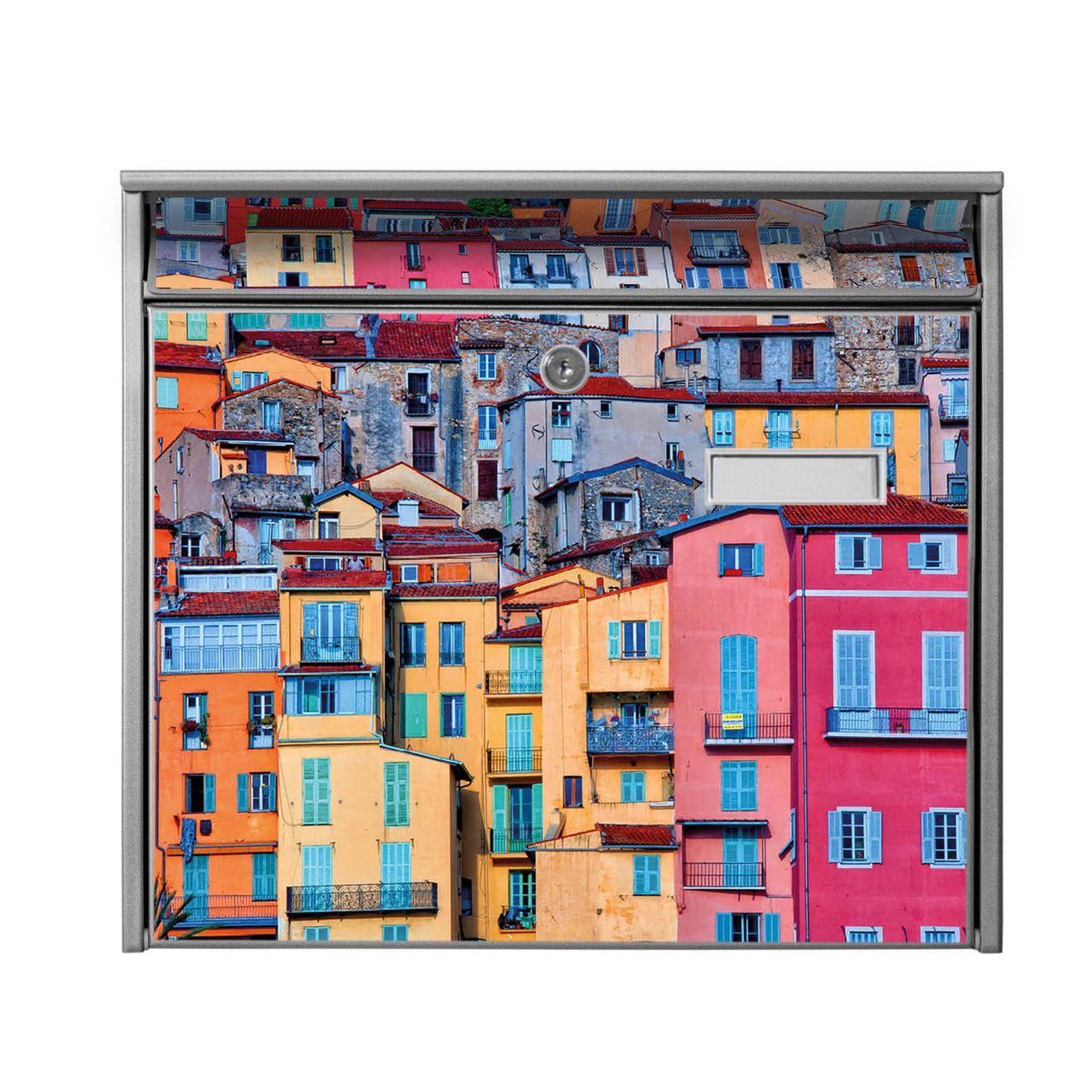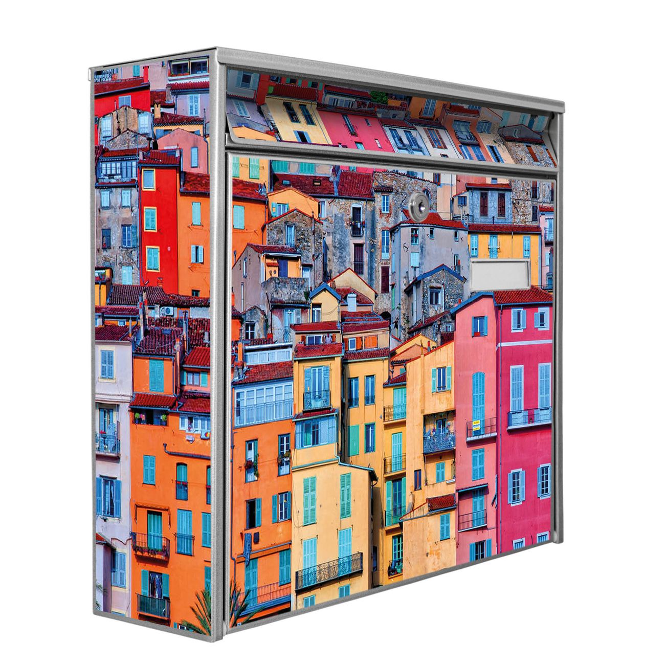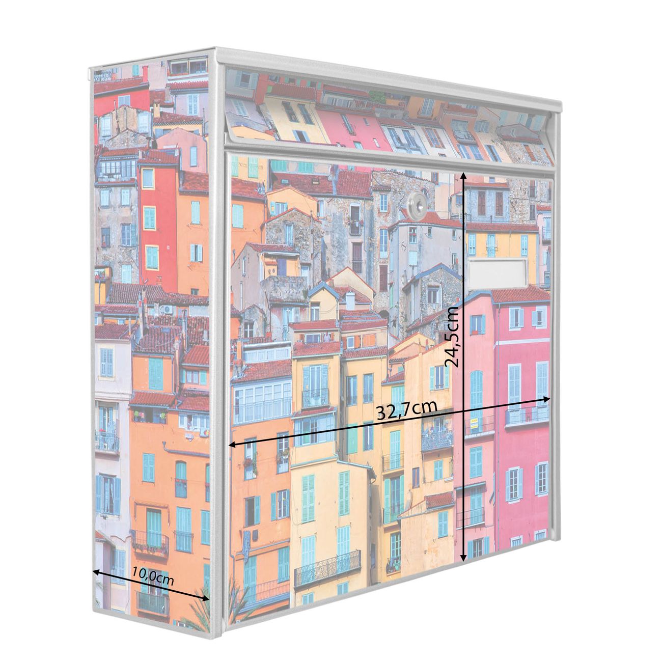 Der Postkasten mit Motiv Häuserberg hat ein sehr ansprechendes und zeitloses Design. Heben Sie Sich von der tristen grauen Masse ab, ohne auf Funktionalität zu verzichten. Die weite Öffnung ohne scharfe Kanten ermöglicht eine einfache Handhabung beim Entnehmen der Post. Die Größe bietet genügend Platz für Sendungen aller Art, der Einwurf fasst auch größere A4 Sendungen. Ihr Burg-Wächter Motivbriefkasten wird in Sachsen in einer kleinen Manufaktur von Hand veredelt. Die Motivfolie ist lösungsmittelfrei und schutzlaminiert, dies sorgt für einen langen Halt. Wir legen großen Wert auf die Verbindung von Funktionalität und Design.