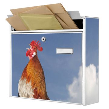 Der Burg Wächter Mail Briefkasten mit Motiv Hahn bietet Ihnen mit seinem Fassungsvermögen genügend Platz auch für große A4 Sendungen. Auf Wunsch können Sie bei uns den passenden Standfuß kaufen und so aus dem Wandbriefkasten einen Standbriefkasten machen. Wir bieten Ihnen ebenfalls Namensschilder, bereits beschriftet oder frei zu beschriften, und verschiedene selbst gestaltete Bitte-Keine-Werbung-Aufkleber.