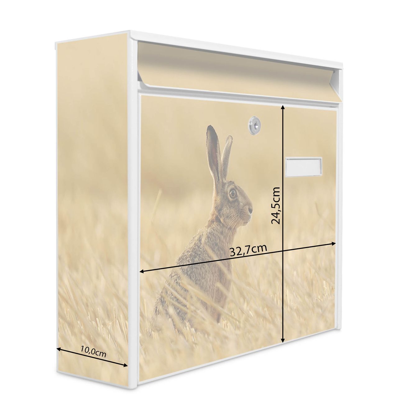 Der Burg Wächter Mail Briefkasten mit Motiv Hase bietet Ihnen mit seinem Fassungsvermögen genügend Platz auch für große A4 Sendungen. Auf Wunsch können Sie bei uns den passenden Standfuß kaufen und so aus dem Wandbriefkasten einen Standbriefkasten machen. Wir bieten Ihnen ebenfalls Namensschilder, bereits beschriftet oder frei zu beschriften, und verschiedene selbst gestaltete Bitte-Keine-Werbung-Aufkleber.