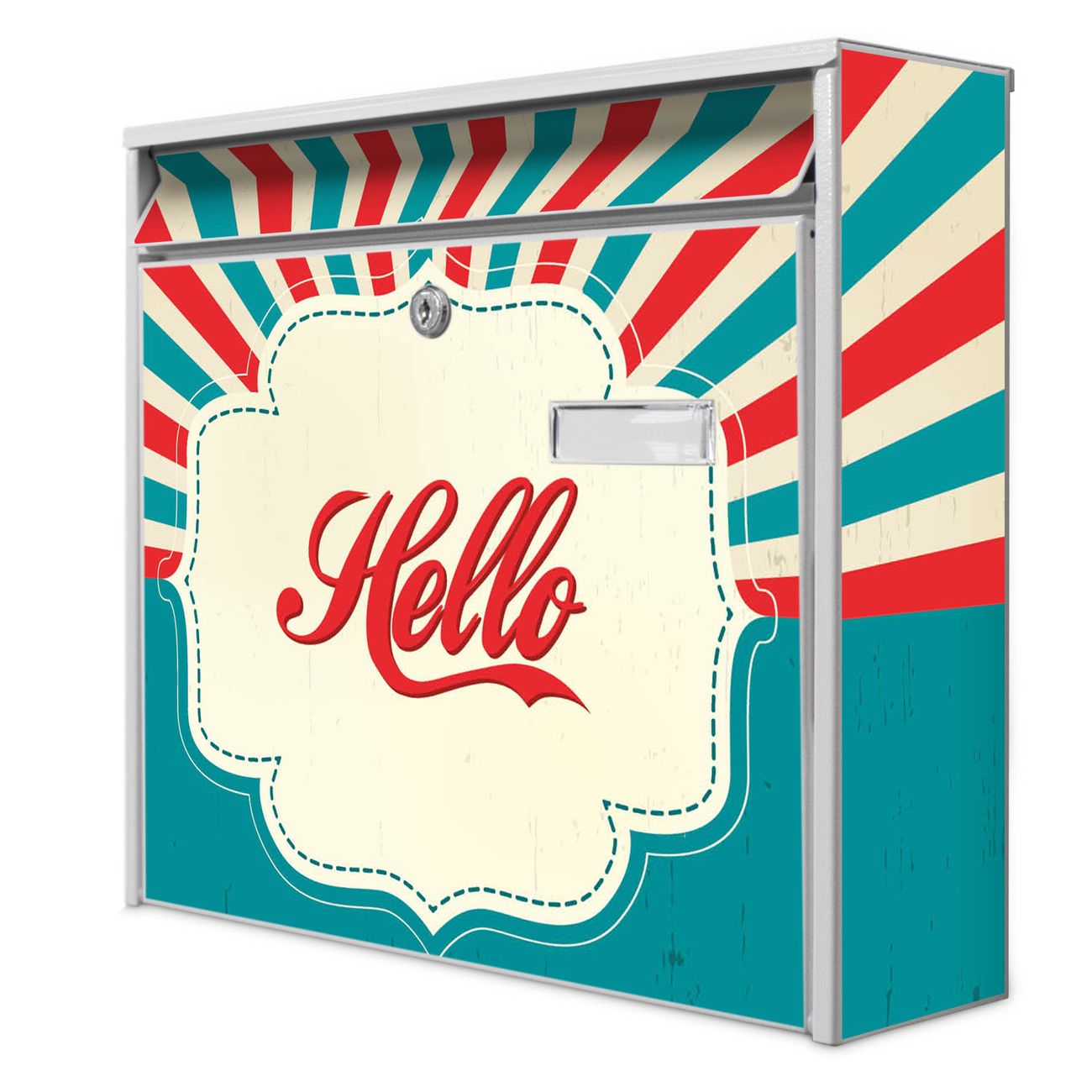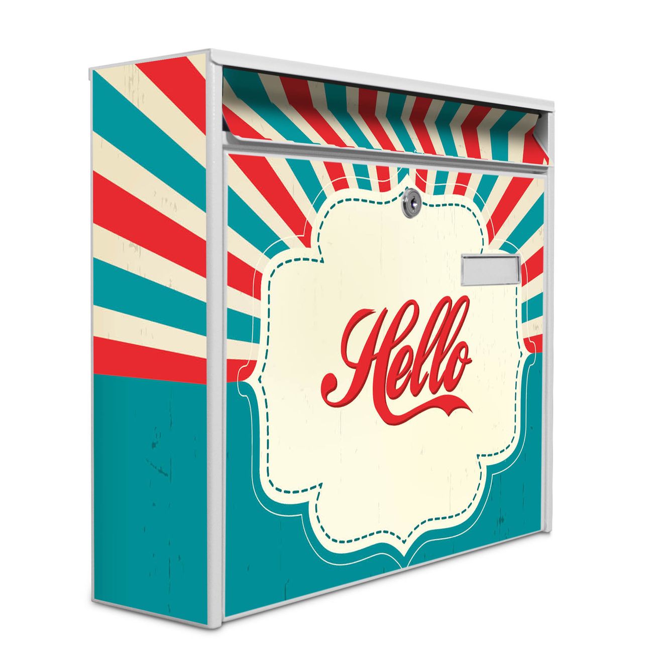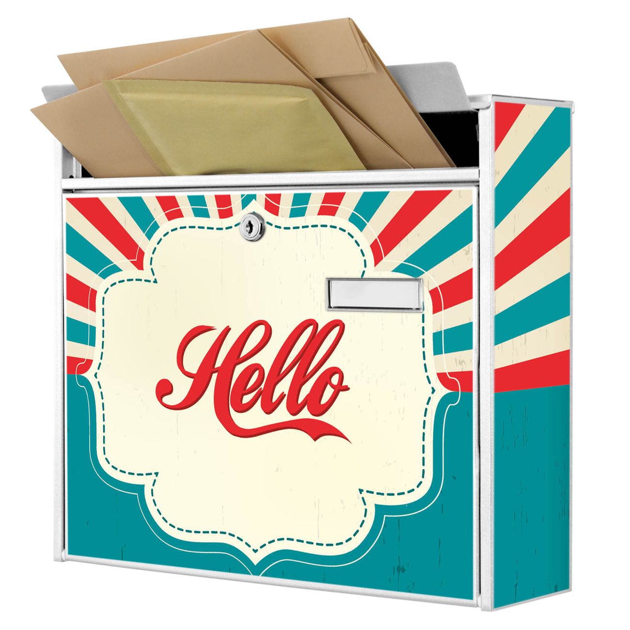 Der Postkasten mit Motiv Hello hat ein sehr ansprechendes und zeitloses Design. Heben Sie Sich von der tristen grauen Masse ab, ohne auf Funktionalität zu verzichten. Die weite Öffnung ohne scharfe Kanten ermöglicht eine einfache Handhabung beim Entnehmen der Post. Die Größe bietet genügend Platz für Sendungen aller Art, der Einwurf fasst auch größere A4 Sendungen. Ihr Burg-Wächter Motivbriefkasten wird in Sachsen in einer kleinen Manufaktur von Hand veredelt. Die Motivfolie ist lösungsmittelfrei und schutzlaminiert, dies sorgt für einen langen Halt. Wir legen großen Wert auf die Verbindung von Funktionalität und Design.