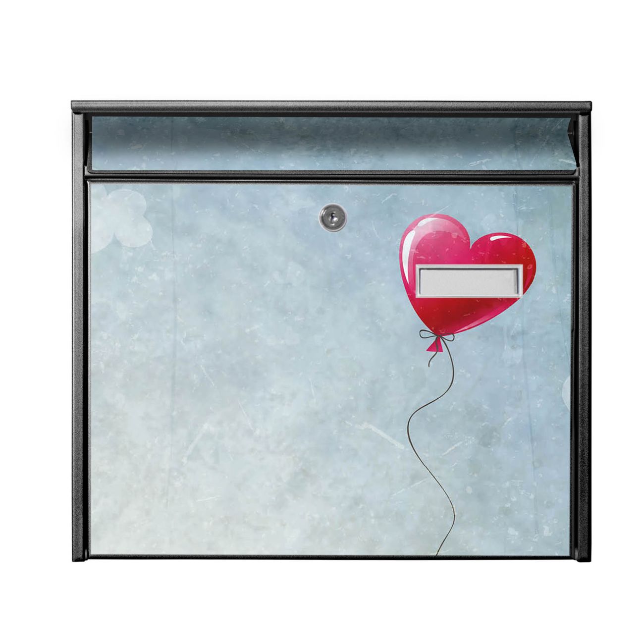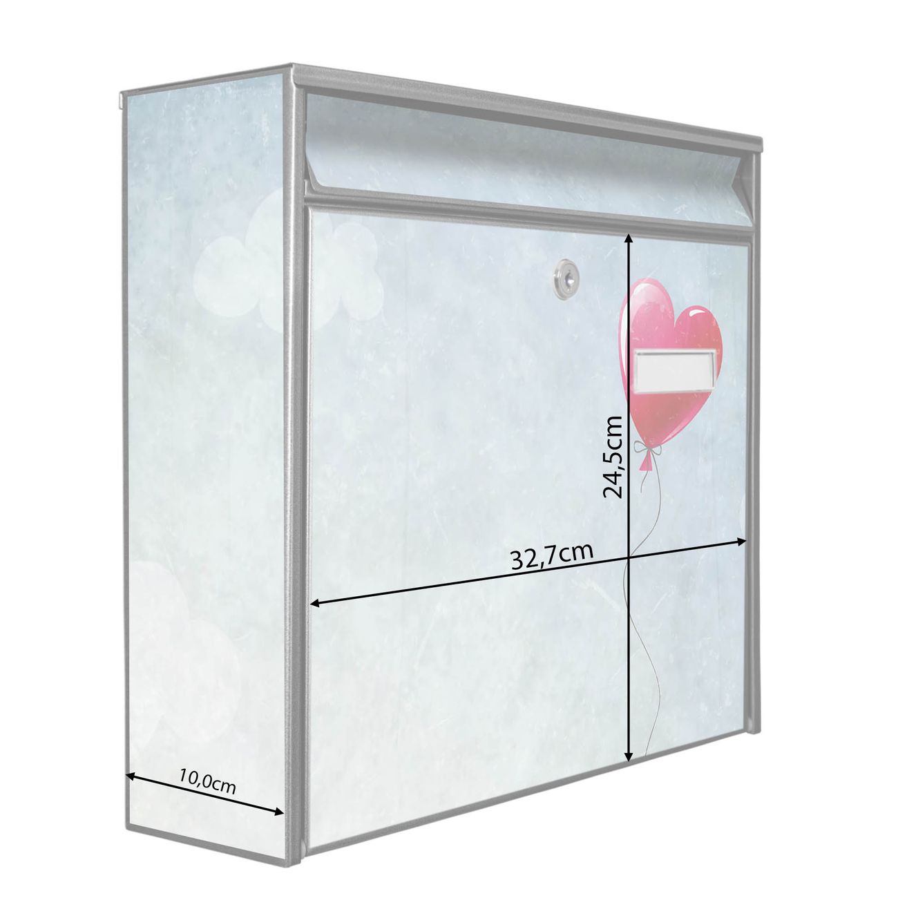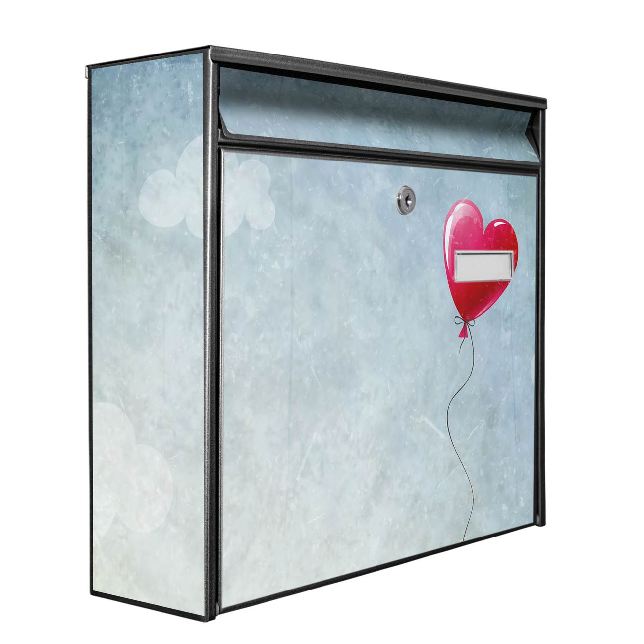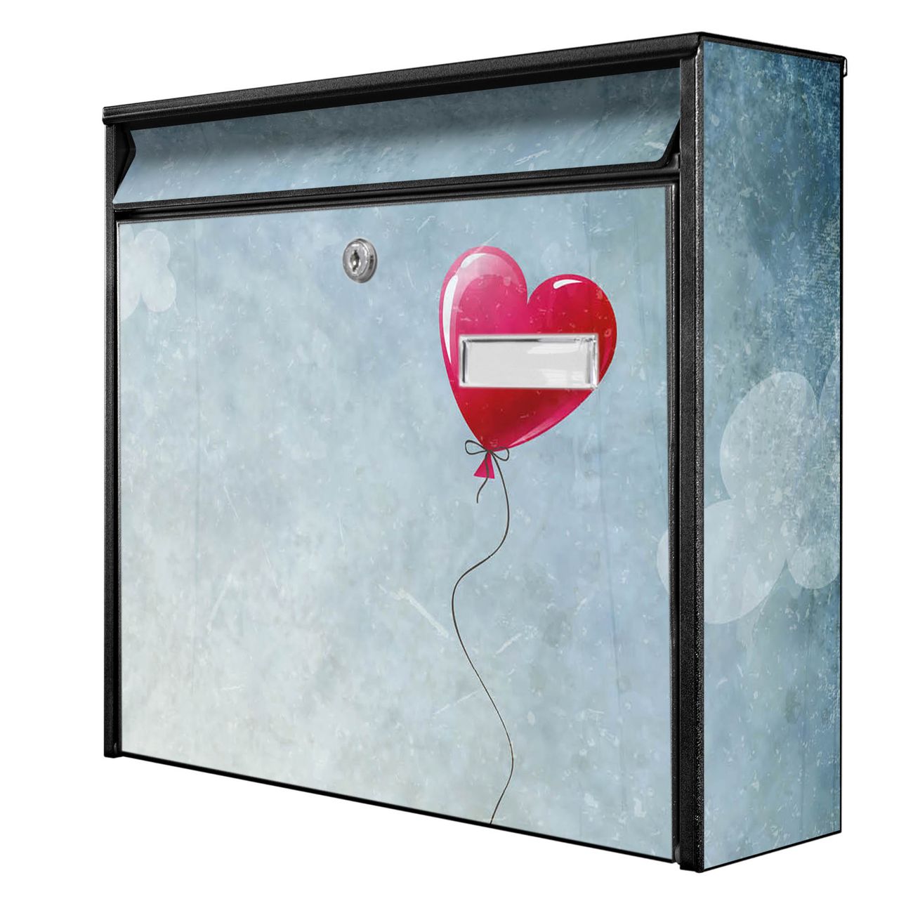Der Burg Wächter Mail Briefkasten mit Motiv Herzballon bietet Ihnen mit seinem Fassungsvermögen genügend Platz auch für große A4 Sendungen. Auf Wunsch können Sie bei uns den passenden Standfuß kaufen und so aus dem Wandbriefkasten einen Standbriefkasten machen. Wir bieten Ihnen ebenfalls Namensschilder, bereits beschriftet oder frei zu beschriften, und verschiedene selbst gestaltete Bitte-Keine-Werbung-Aufkleber.