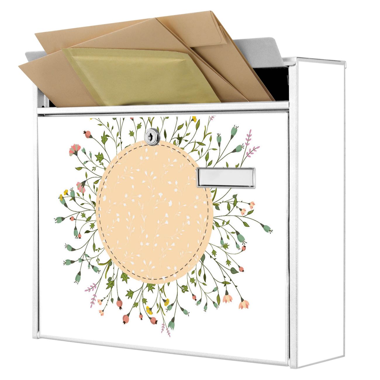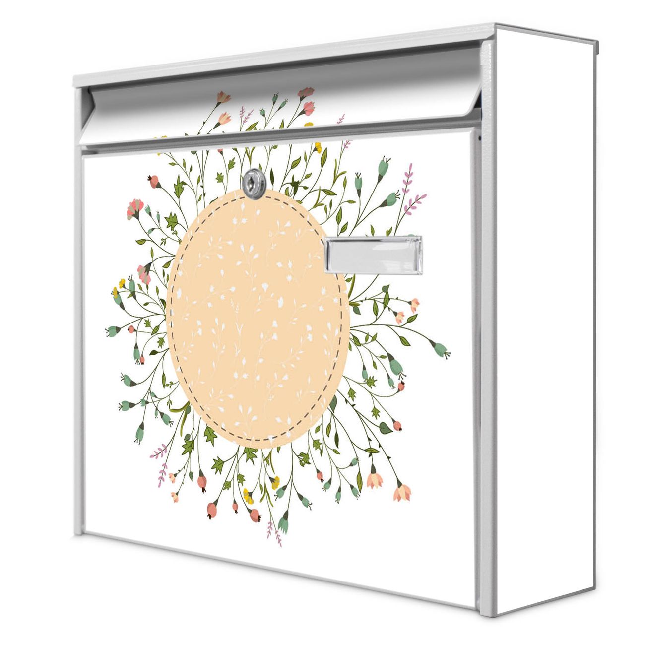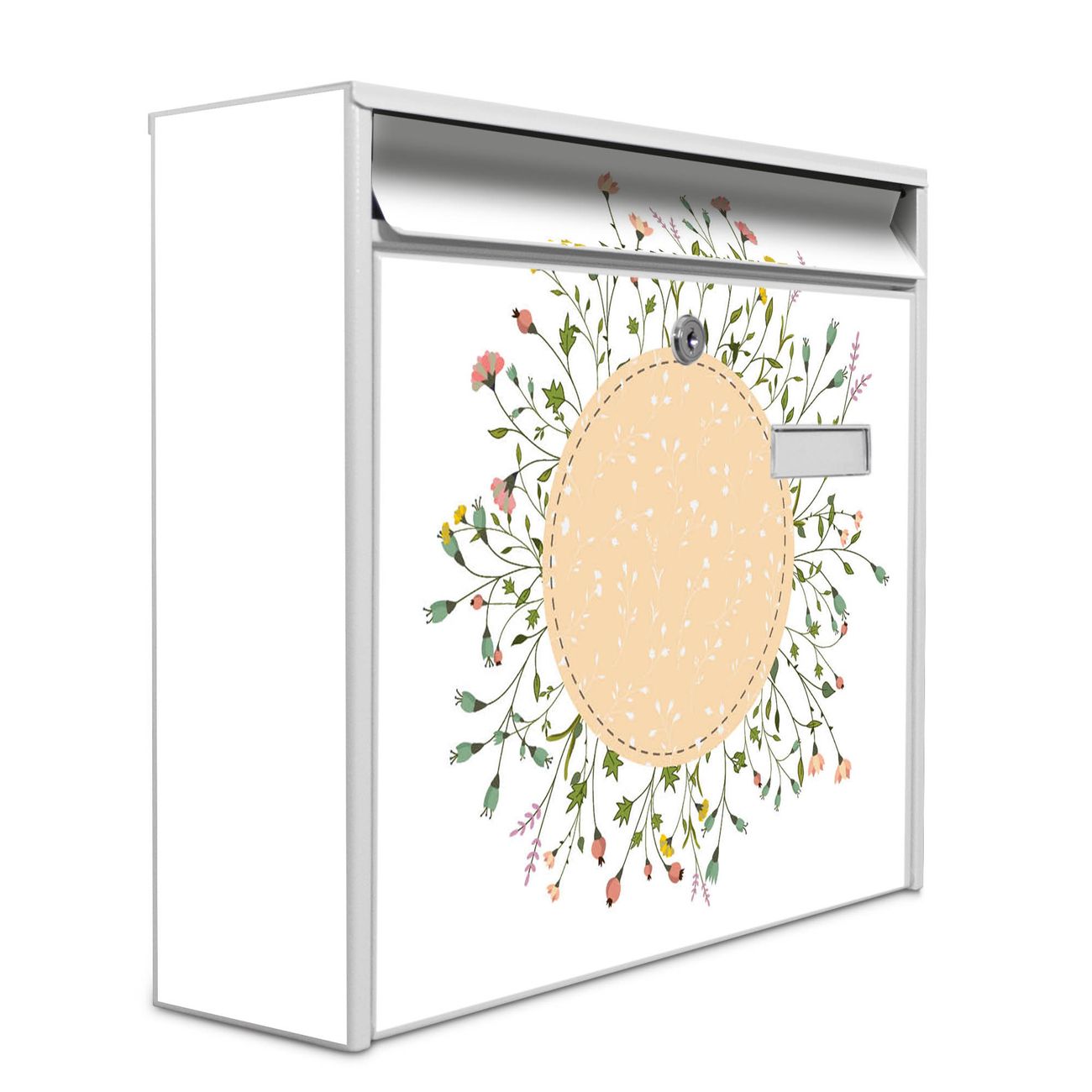 Der Burg Wächter Mail Briefkasten mit Motiv Hibiskus Kreis bietet Ihnen mit seinem Fassungsvermögen genügend Platz auch für große A4 Sendungen. Auf Wunsch können Sie bei uns den passenden Standfuß kaufen und so aus dem Wandbriefkasten einen Standbriefkasten machen. Wir bieten Ihnen ebenfalls Namensschilder, bereits beschriftet oder frei zu beschriften, und verschiedene selbst gestaltete Bitte-Keine-Werbung-Aufkleber.