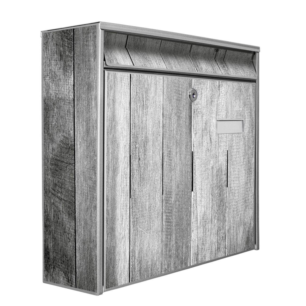 Der Postkasten mit Motiv Holz Monochrom hat ein sehr ansprechendes und zeitloses Design. Heben Sie Sich von der tristen grauen Masse ab, ohne auf Funktionalität zu verzichten. Die weite Öffnung ohne scharfe Kanten ermöglicht eine einfache Handhabung beim Entnehmen der Post. Die Größe bietet genügend Platz für Sendungen aller Art, der Einwurf fasst auch größere A4 Sendungen. Ihr Burg-Wächter Motivbriefkasten wird in Sachsen in einer kleinen Manufaktur von Hand veredelt. Die Motivfolie ist lösungsmittelfrei und schutzlaminiert, dies sorgt für einen langen Halt. Wir legen großen Wert auf die Verbindung von Funktionalität und Design.
