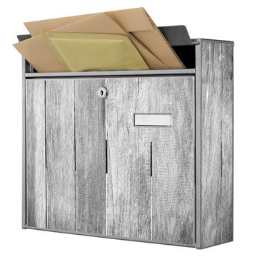 Der Burg Wächter Mail Briefkasten mit Motiv Holz Monochrom bietet Ihnen mit seinem Fassungsvermögen genügend Platz auch für große A4 Sendungen. Auf Wunsch können Sie bei uns den passenden Standfuß kaufen und so aus dem Wandbriefkasten einen Standbriefkasten machen. Wir bieten Ihnen ebenfalls Namensschilder, bereits beschriftet oder frei zu beschriften, und verschiedene selbst gestaltete Bitte-Keine-Werbung-Aufkleber.