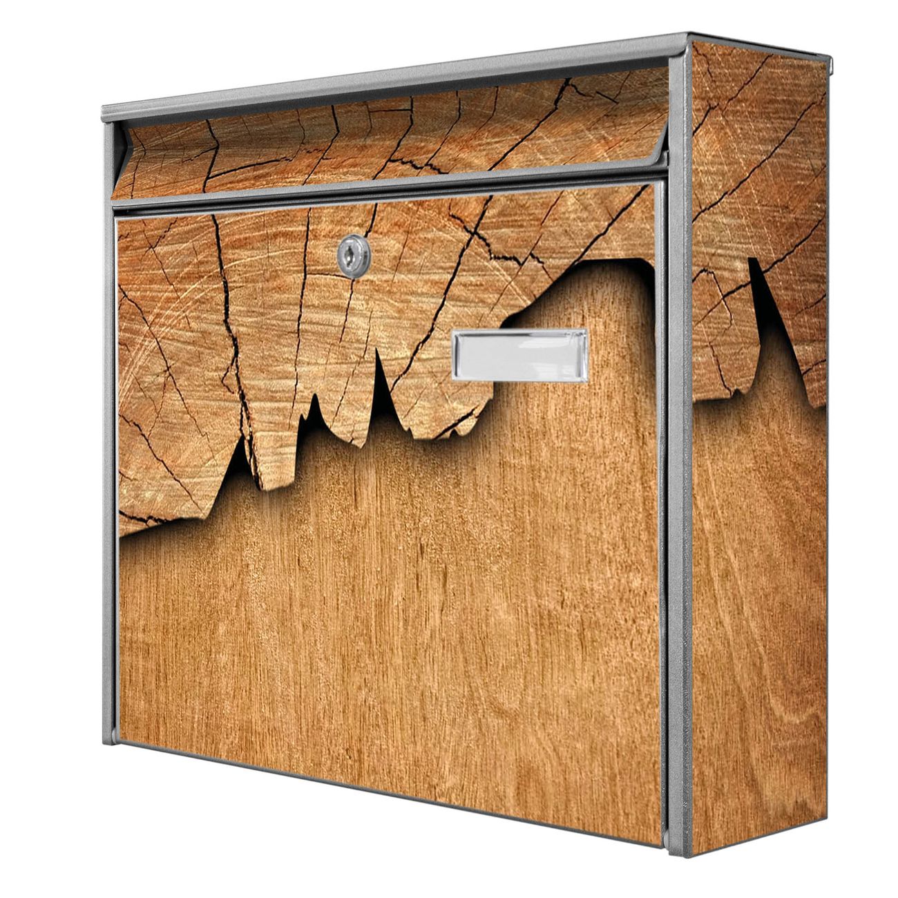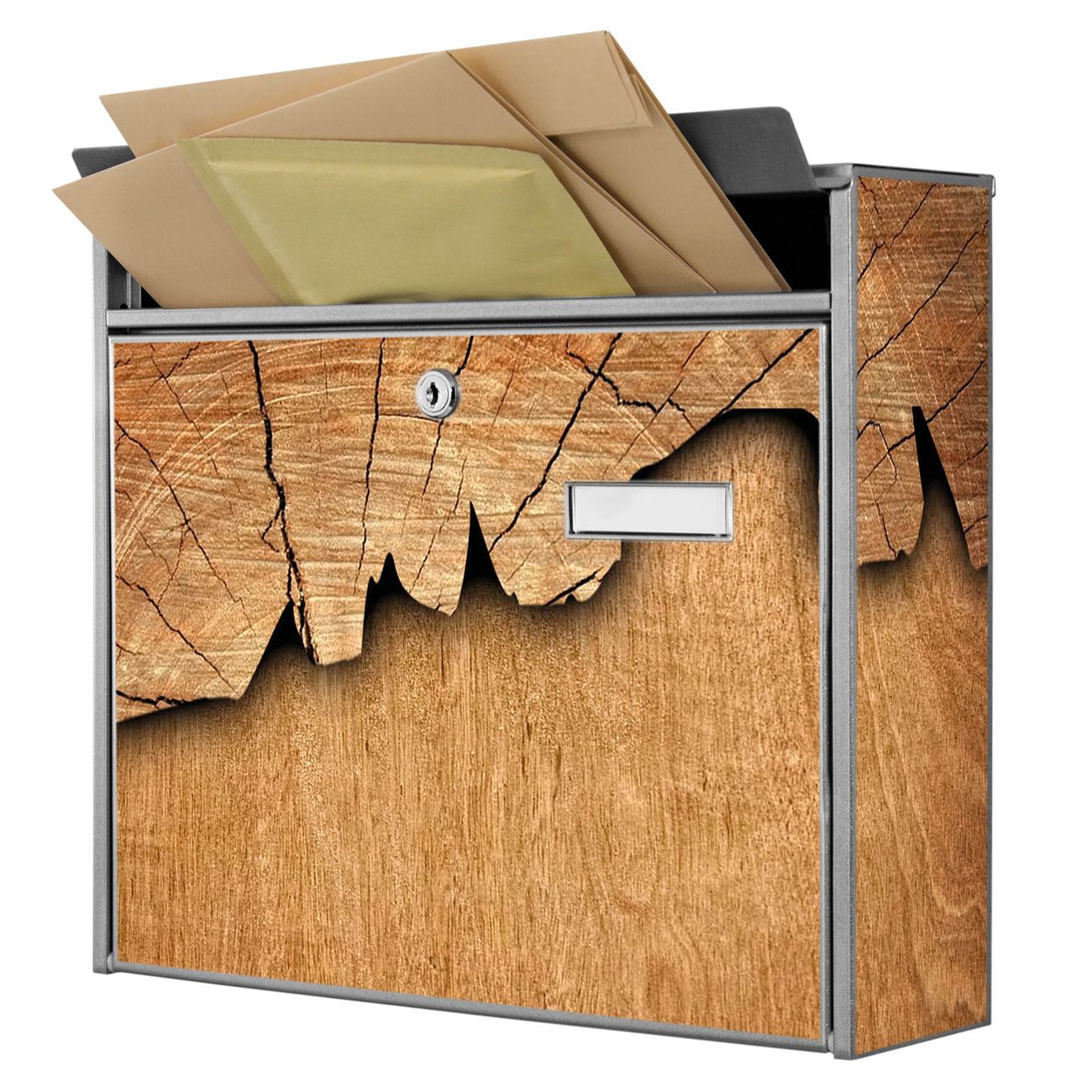 Der Postkasten mit Motiv Holz hat ein sehr ansprechendes und zeitloses Design. Heben Sie Sich von der tristen grauen Masse ab, ohne auf Funktionalität zu verzichten. Die weite Öffnung ohne scharfe Kanten ermöglicht eine einfache Handhabung beim Entnehmen der Post. Die Größe bietet genügend Platz für Sendungen aller Art, der Einwurf fasst auch größere A4 Sendungen. Ihr Burg-Wächter Motivbriefkasten wird in Sachsen in einer kleinen Manufaktur von Hand veredelt. Die Motivfolie ist lösungsmittelfrei und schutzlaminiert, dies sorgt für einen langen Halt. Wir legen großen Wert auf die Verbindung von Funktionalität und Design.