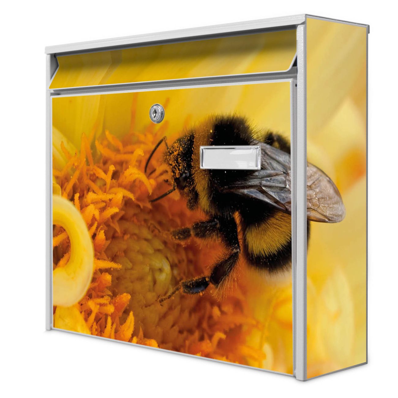 Der Burg Wächter Mail Briefkasten mit Motiv Hummel bietet Ihnen mit seinem Fassungsvermögen genügend Platz auch für große A4 Sendungen. Auf Wunsch können Sie bei uns den passenden Standfuß kaufen und so aus dem Wandbriefkasten einen Standbriefkasten machen. Wir bieten Ihnen ebenfalls Namensschilder, bereits beschriftet oder frei zu beschriften, und verschiedene selbst gestaltete Bitte-Keine-Werbung-Aufkleber.