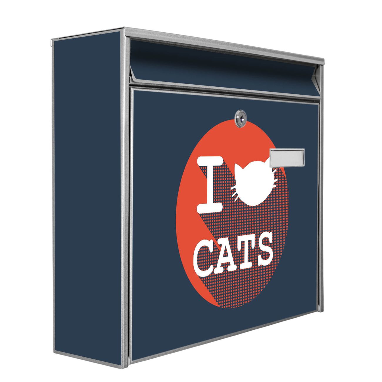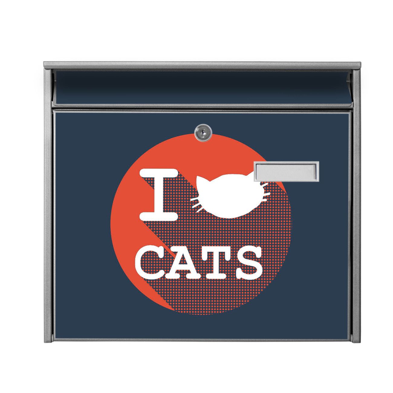 Der Burg Wächter Mail Briefkasten mit Motiv I Love Cats bietet Ihnen mit seinem Fassungsvermögen genügend Platz auch für große A4 Sendungen. Auf Wunsch können Sie bei uns den passenden Standfuß kaufen und so aus dem Wandbriefkasten einen Standbriefkasten machen. Wir bieten Ihnen ebenfalls Namensschilder, bereits beschriftet oder frei zu beschriften, und verschiedene selbst gestaltete Bitte-Keine-Werbung-Aufkleber.