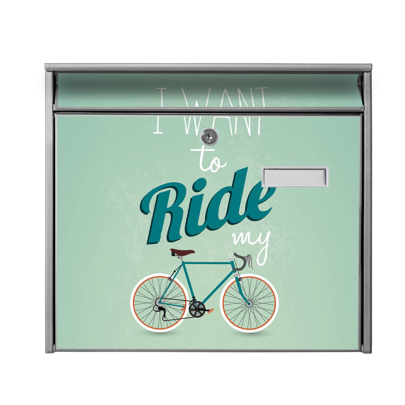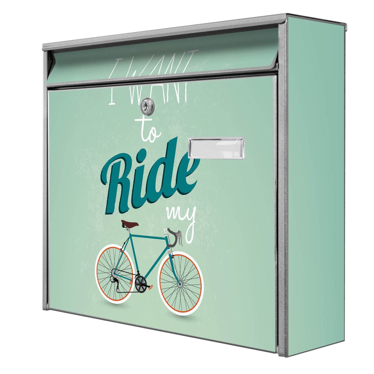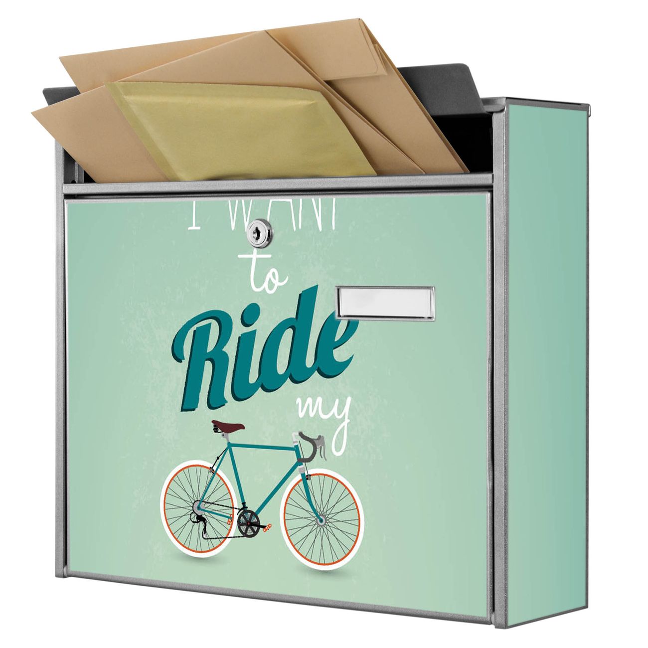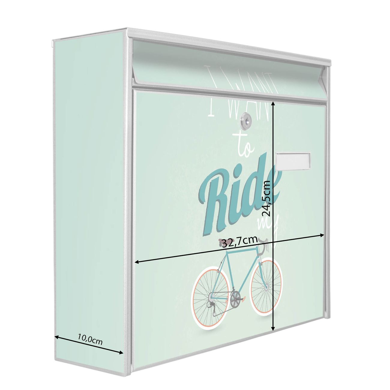 Der Burg Wächter Mail Briefkasten mit Motiv I want to ride my bike bietet Ihnen mit seinem Fassungsvermögen genügend Platz auch für große A4 Sendungen. Auf Wunsch können Sie bei uns den passenden Standfuß kaufen und so aus dem Wandbriefkasten einen Standbriefkasten machen. Wir bieten Ihnen ebenfalls Namensschilder, bereits beschriftet oder frei zu beschriften, und verschiedene selbst gestaltete Bitte-Keine-Werbung-Aufkleber.