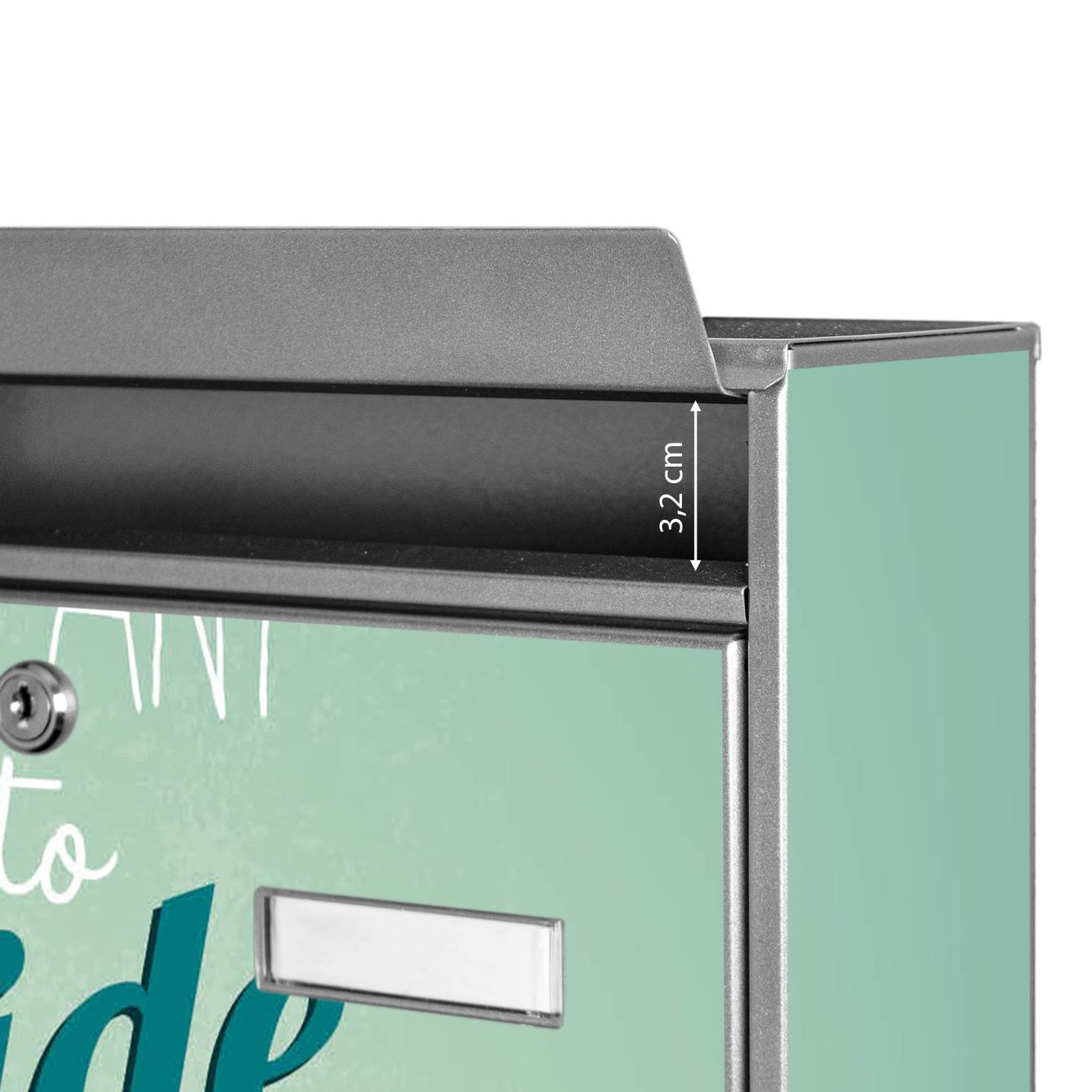 Die Größe des Briefkastens ist 36 x 32 x 10cm (BxHxT) groß. Das Motiv besteht aus einer wetter- und UV-festen Folie, die mit einem Schutzlaminat überzogen ist und Ihren Briefkasten zusätzlich vor Kratzern schützt. Sie erhalten 2 Schlüssel sowie das Montagematerial.