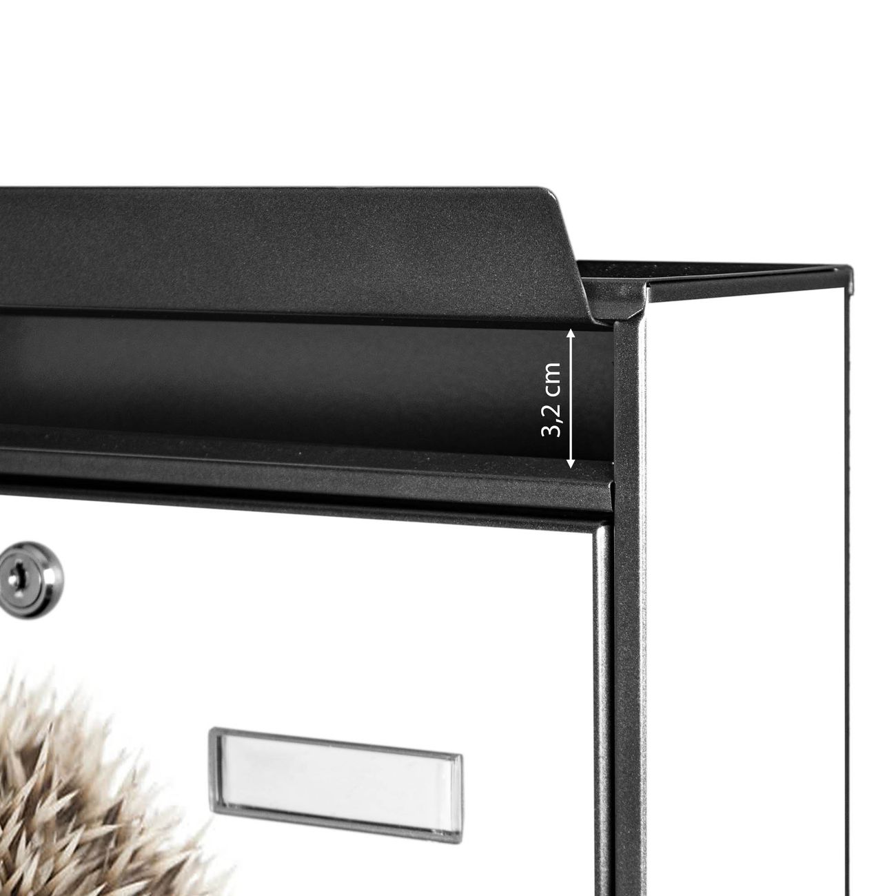 Der Burg Wächter Mail Briefkasten mit Motiv Igel bietet Ihnen mit seinem Fassungsvermögen genügend Platz auch für große A4 Sendungen. Auf Wunsch können Sie bei uns den passenden Standfuß kaufen und so aus dem Wandbriefkasten einen Standbriefkasten machen. Wir bieten Ihnen ebenfalls Namensschilder, bereits beschriftet oder frei zu beschriften, und verschiedene selbst gestaltete Bitte-Keine-Werbung-Aufkleber.