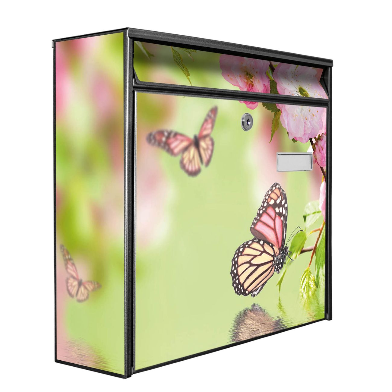 Der Postkasten mit Motiv Japanische Kirschblüte hat ein sehr ansprechendes und zeitloses Design. Heben Sie Sich von der tristen grauen Masse ab, ohne auf Funktionalität zu verzichten. Die weite Öffnung ohne scharfe Kanten ermöglicht eine einfache Handhabung beim Entnehmen der Post. Die Größe bietet genügend Platz für Sendungen aller Art, der Einwurf fasst auch größere A4 Sendungen. Ihr Burg-Wächter Motivbriefkasten wird in Sachsen in einer kleinen Manufaktur von Hand veredelt. Die Motivfolie ist lösungsmittelfrei und schutzlaminiert, dies sorgt für einen langen Halt. Wir legen großen Wert auf die Verbindung von Funktionalität und Design.