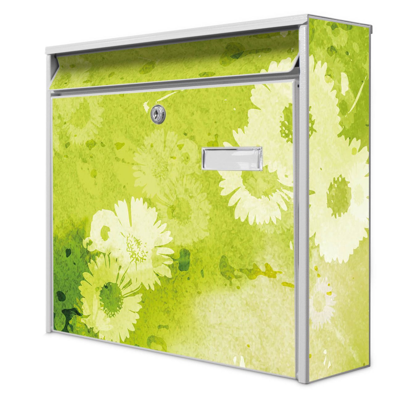 Der Burg Wächter Mail Briefkasten mit Motiv Kamille Grün bietet Ihnen mit seinem Fassungsvermögen genügend Platz auch für große A4 Sendungen. Auf Wunsch können Sie bei uns den passenden Standfuß kaufen und so aus dem Wandbriefkasten einen Standbriefkasten machen. Wir bieten Ihnen ebenfalls Namensschilder, bereits beschriftet oder frei zu beschriften, und verschiedene selbst gestaltete Bitte-Keine-Werbung-Aufkleber.