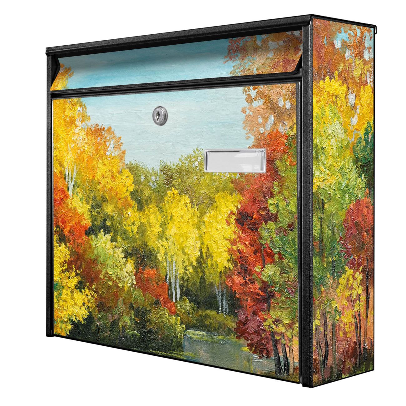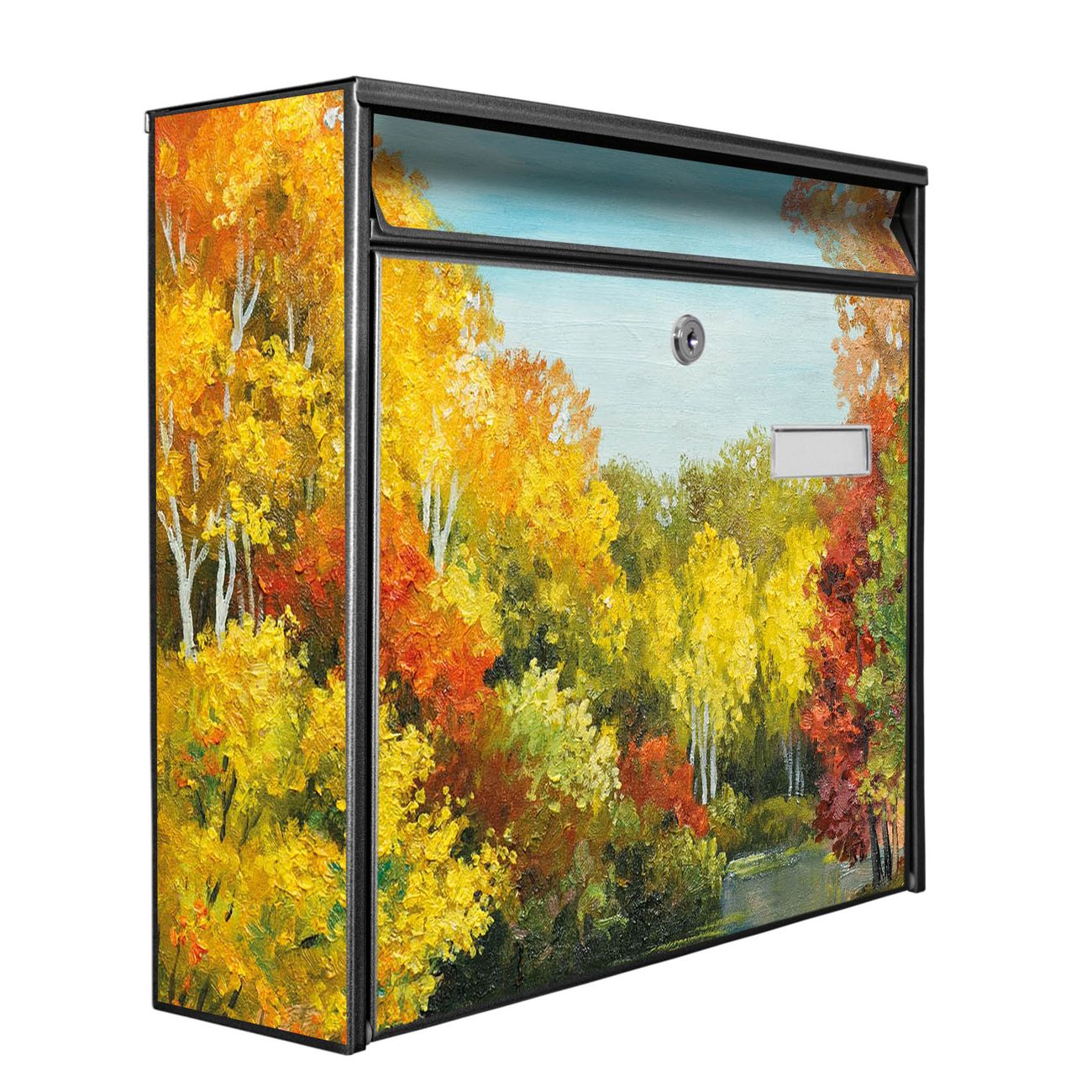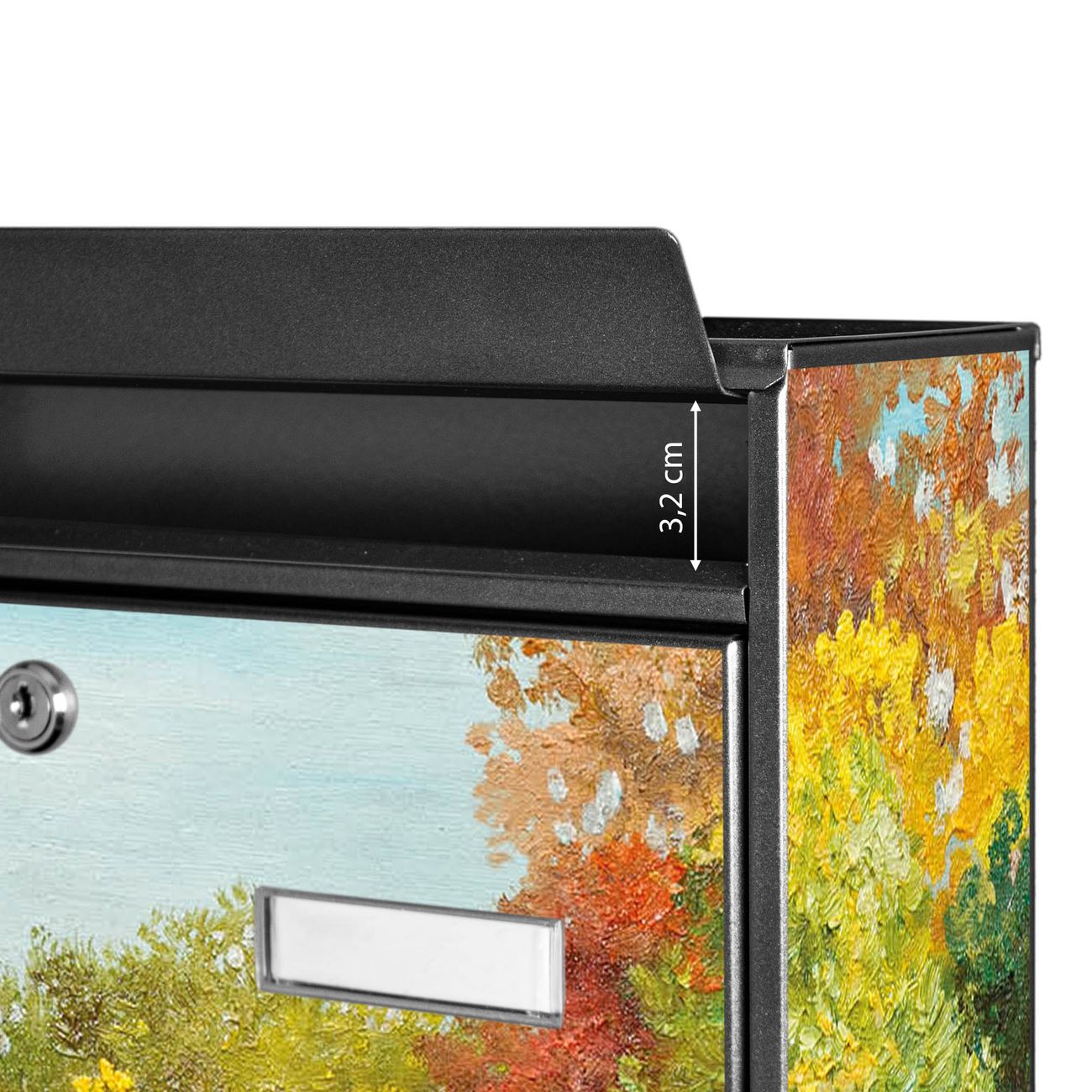 Der Postkasten mit Motiv Kanal Im Herbst hat ein sehr ansprechendes und zeitloses Design. Heben Sie Sich von der tristen grauen Masse ab, ohne auf Funktionalität zu verzichten. Die weite Öffnung ohne scharfe Kanten ermöglicht eine einfache Handhabung beim Entnehmen der Post. Die Größe bietet genügend Platz für Sendungen aller Art, der Einwurf fasst auch größere A4 Sendungen. Ihr Burg-Wächter Motivbriefkasten wird in Sachsen in einer kleinen Manufaktur von Hand veredelt. Die Motivfolie ist lösungsmittelfrei und schutzlaminiert, dies sorgt für einen langen Halt. Wir legen großen Wert auf die Verbindung von Funktionalität und Design.