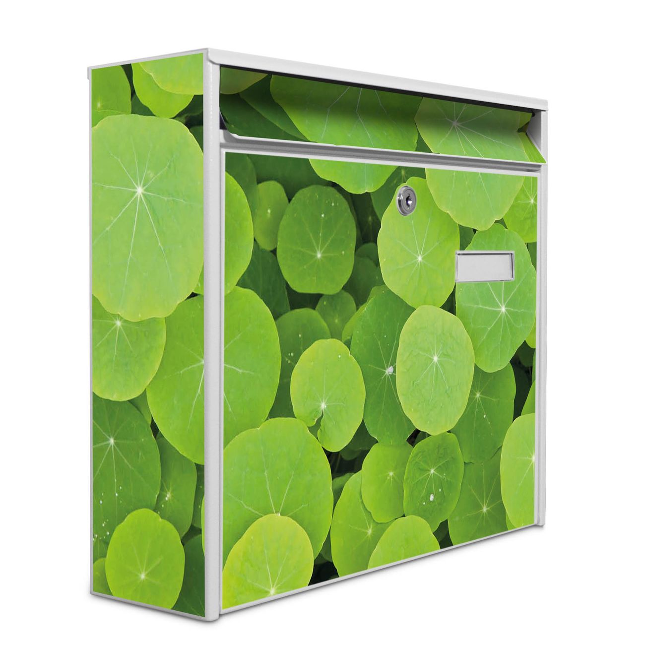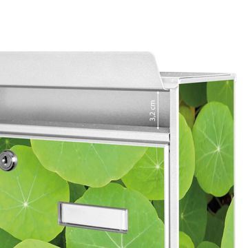 Der Burg Wächter Mail Briefkasten mit Motiv Kapuzinerkresse bietet Ihnen mit seinem Fassungsvermögen genügend Platz auch für große A4 Sendungen. Auf Wunsch können Sie bei uns den passenden Standfuß kaufen und so aus dem Wandbriefkasten einen Standbriefkasten machen. Wir bieten Ihnen ebenfalls Namensschilder, bereits beschriftet oder frei zu beschriften, und verschiedene selbst gestaltete Bitte-Keine-Werbung-Aufkleber.