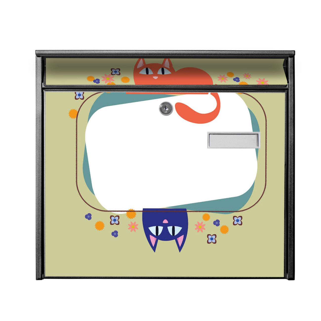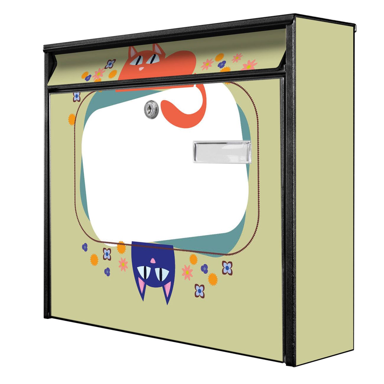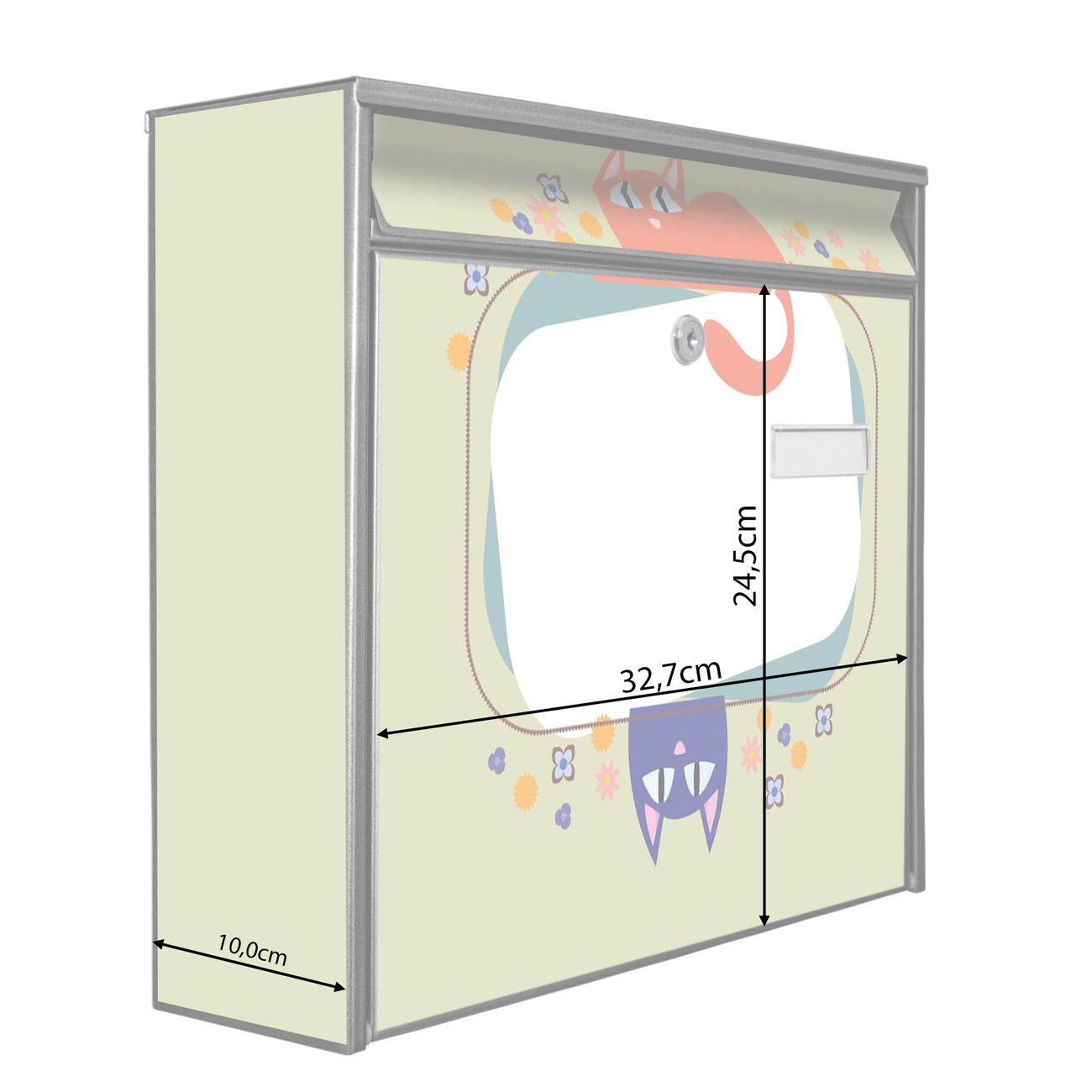 Der Burg Wächter Mail Briefkasten mit Motiv Karikatur Katzen bietet Ihnen mit seinem Fassungsvermögen genügend Platz auch für große A4 Sendungen. Auf Wunsch können Sie bei uns den passenden Standfuß kaufen und so aus dem Wandbriefkasten einen Standbriefkasten machen. Wir bieten Ihnen ebenfalls Namensschilder, bereits beschriftet oder frei zu beschriften, und verschiedene selbst gestaltete Bitte-Keine-Werbung-Aufkleber.