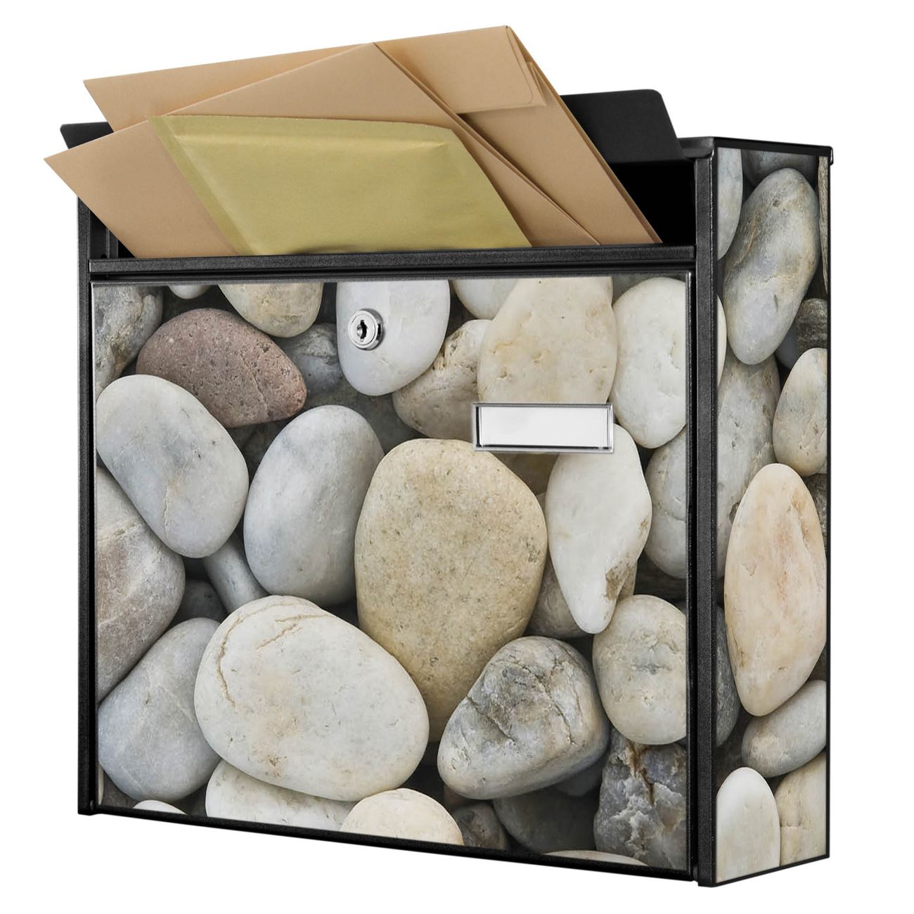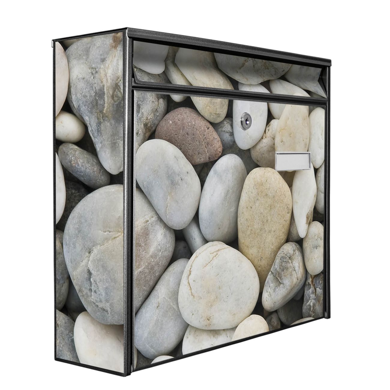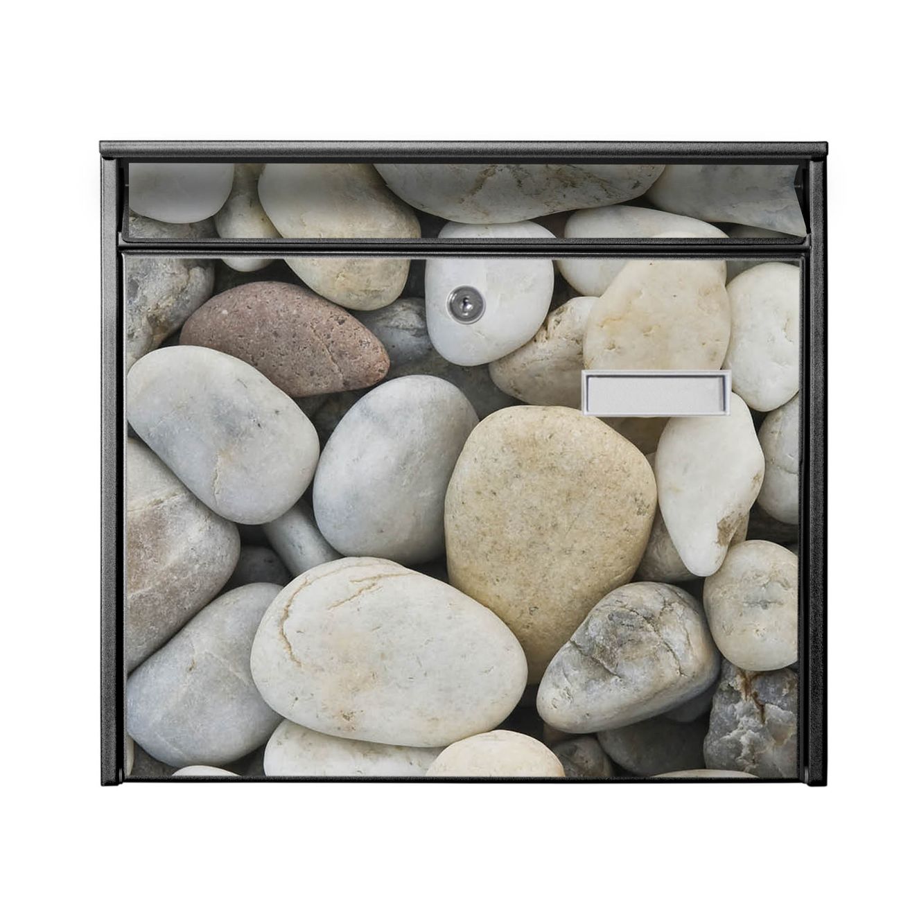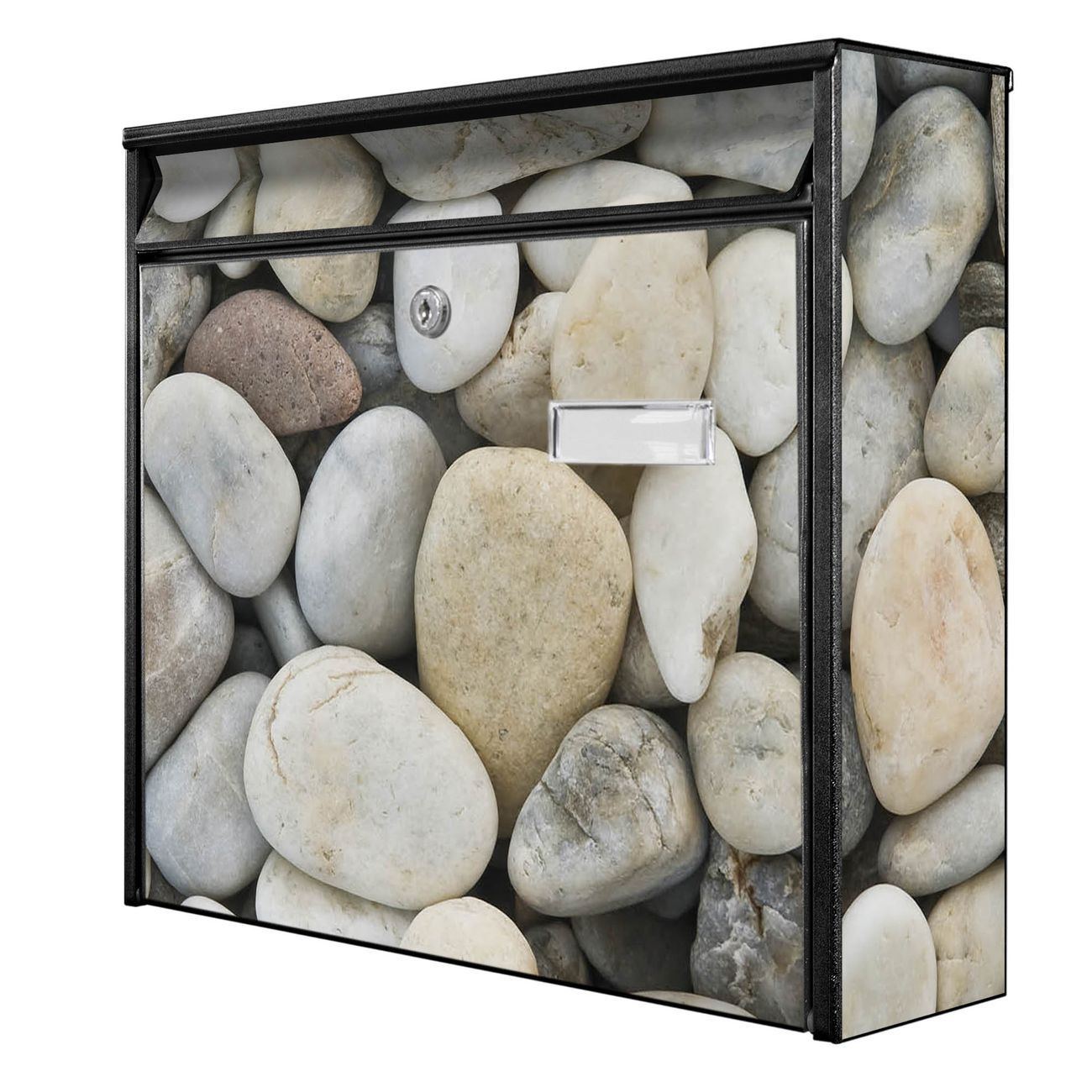 Der Postkasten mit Motiv Kieselsteine hat ein sehr ansprechendes und zeitloses Design. Heben Sie Sich von der tristen grauen Masse ab, ohne auf Funktionalität zu verzichten. Die weite Öffnung ohne scharfe Kanten ermöglicht eine einfache Handhabung beim Entnehmen der Post. Die Größe bietet genügend Platz für Sendungen aller Art, der Einwurf fasst auch größere A4 Sendungen. Ihr Burg-Wächter Motivbriefkasten wird in Sachsen in einer kleinen Manufaktur von Hand veredelt. Die Motivfolie ist lösungsmittelfrei und schutzlaminiert, dies sorgt für einen langen Halt. Wir legen großen Wert auf die Verbindung von Funktionalität und Design.