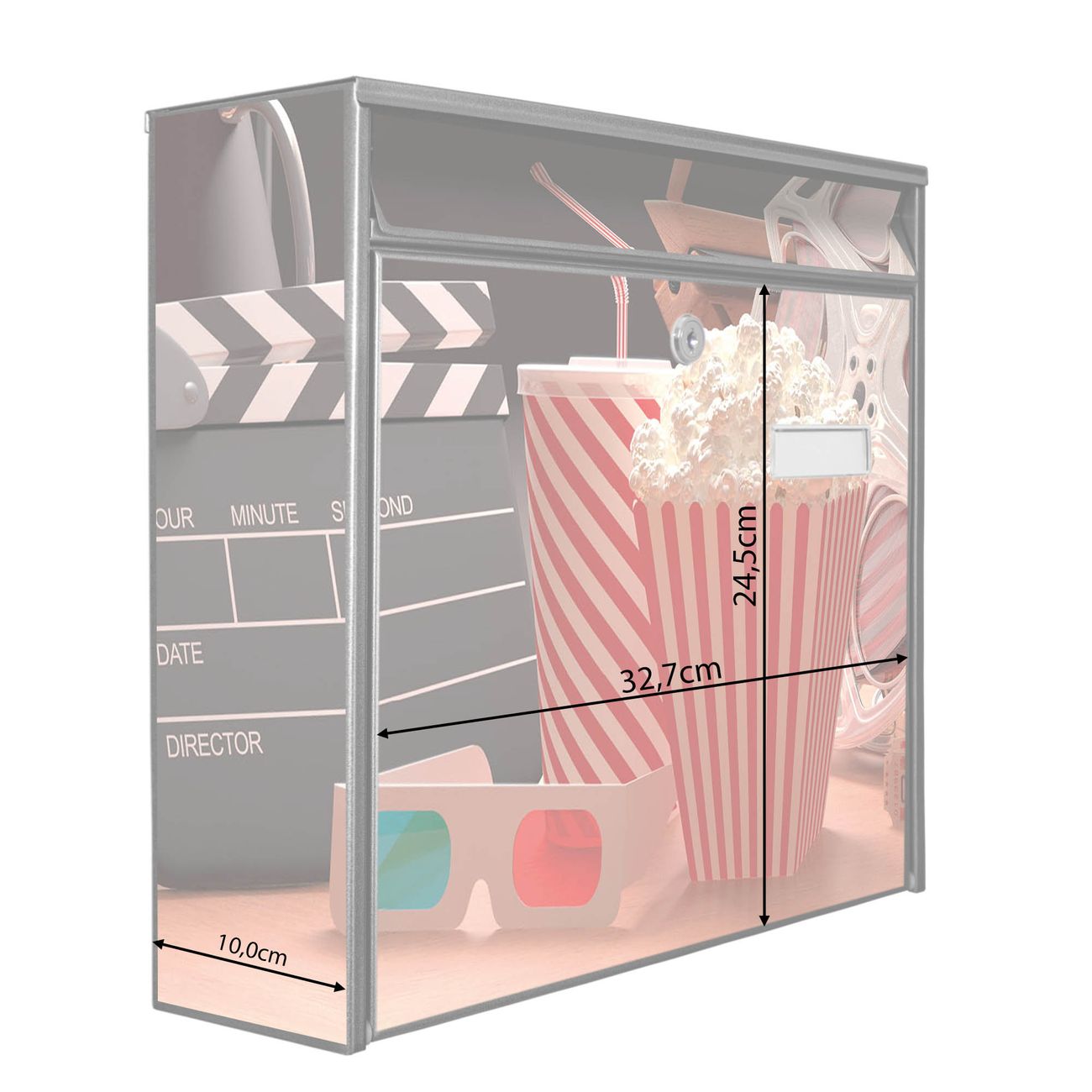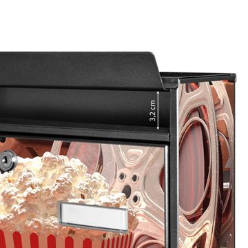 Der Burg Wächter Mail Briefkasten mit Motiv Kino bietet Ihnen mit seinem Fassungsvermögen genügend Platz auch für große A4 Sendungen. Auf Wunsch können Sie bei uns den passenden Standfuß kaufen und so aus dem Wandbriefkasten einen Standbriefkasten machen. Wir bieten Ihnen ebenfalls Namensschilder, bereits beschriftet oder frei zu beschriften, und verschiedene selbst gestaltete Bitte-Keine-Werbung-Aufkleber.