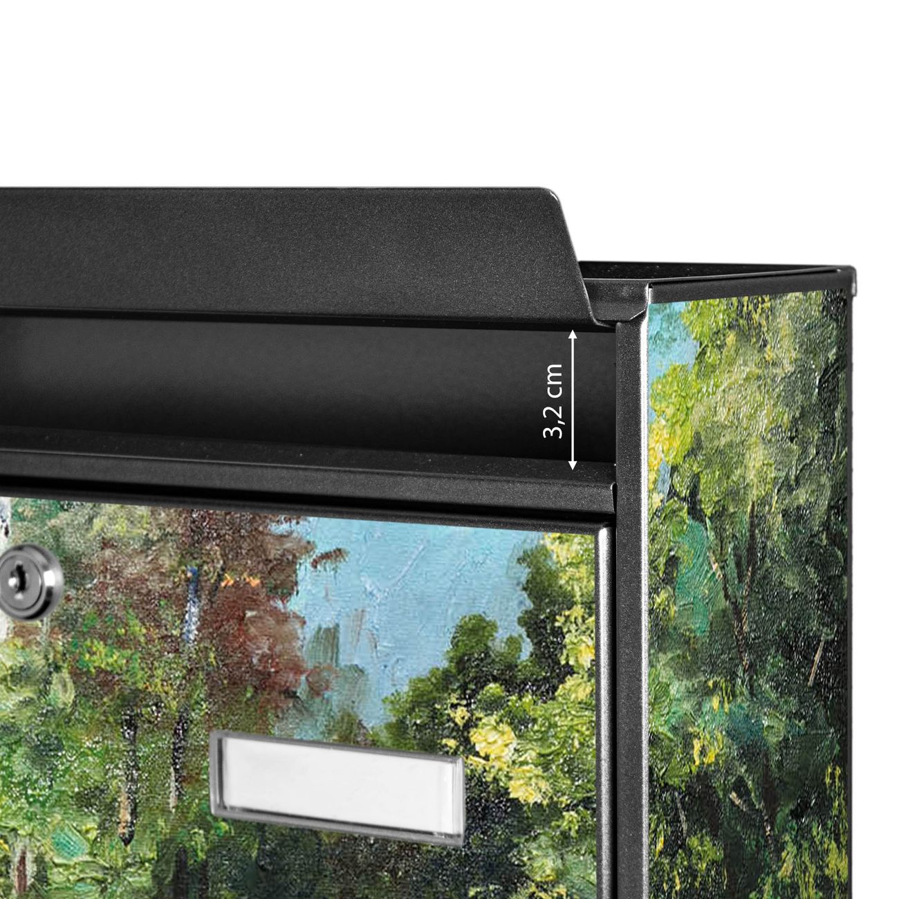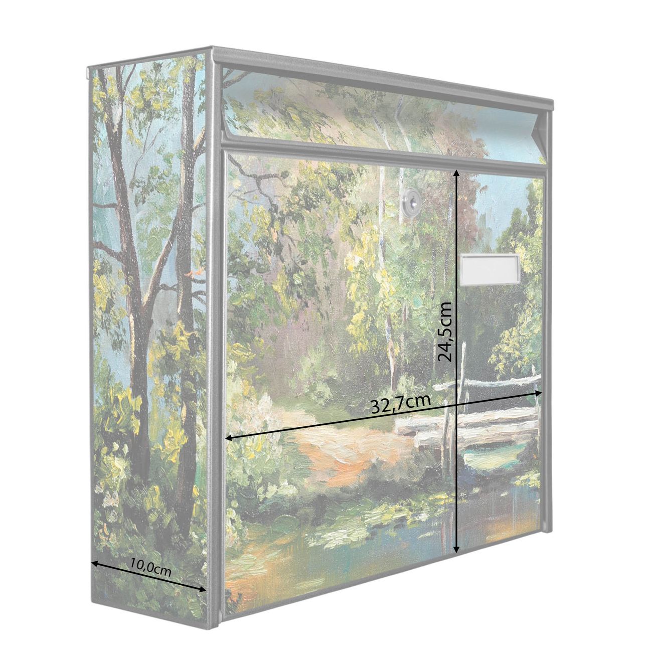 Die Größe des Briefkastens ist 36 x 32 x 10cm (BxHxT) groß. Das Motiv besteht aus einer wetter- und UV-festen Folie, die mit einem Schutzlaminat überzogen ist und Ihren Briefkasten zusätzlich vor Kratzern schützt. Sie erhalten 2 Schlüssel sowie das Montagematerial.