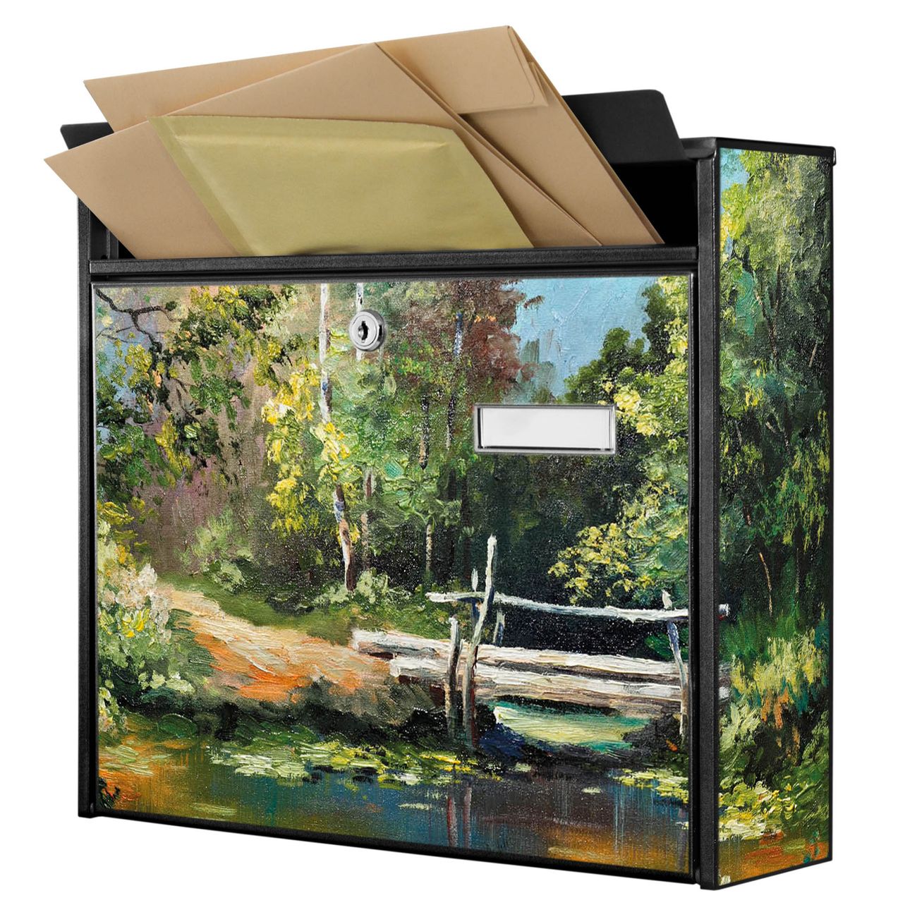 Der Burg Wächter Mail Briefkasten mit Motiv Kleine Brücke bietet Ihnen mit seinem Fassungsvermögen genügend Platz auch für große A4 Sendungen. Auf Wunsch können Sie bei uns den passenden Standfuß kaufen und so aus dem Wandbriefkasten einen Standbriefkasten machen. Wir bieten Ihnen ebenfalls Namensschilder, bereits beschriftet oder frei zu beschriften, und verschiedene selbst gestaltete Bitte-Keine-Werbung-Aufkleber.
