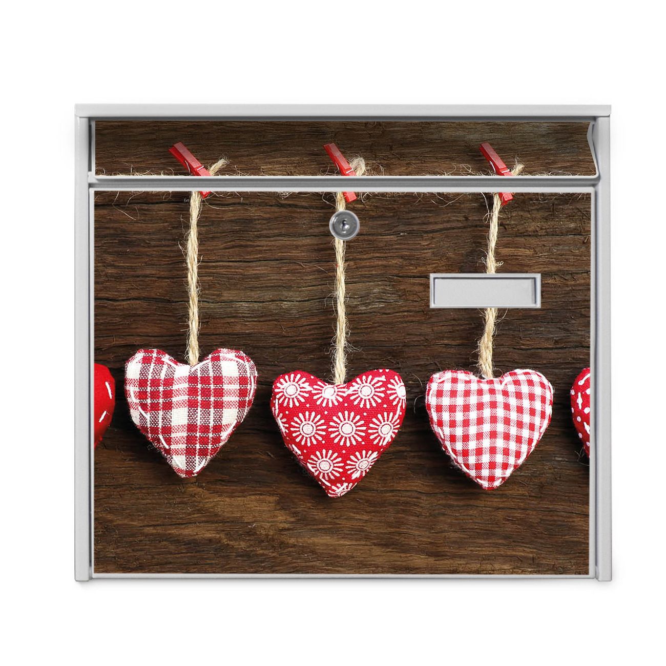 Der Burg Wächter Mail Briefkasten mit Motiv Kleine Herzen bietet Ihnen mit seinem Fassungsvermögen genügend Platz auch für große A4 Sendungen. Auf Wunsch können Sie bei uns den passenden Standfuß kaufen und so aus dem Wandbriefkasten einen Standbriefkasten machen. Wir bieten Ihnen ebenfalls Namensschilder, bereits beschriftet oder frei zu beschriften, und verschiedene selbst gestaltete Bitte-Keine-Werbung-Aufkleber.