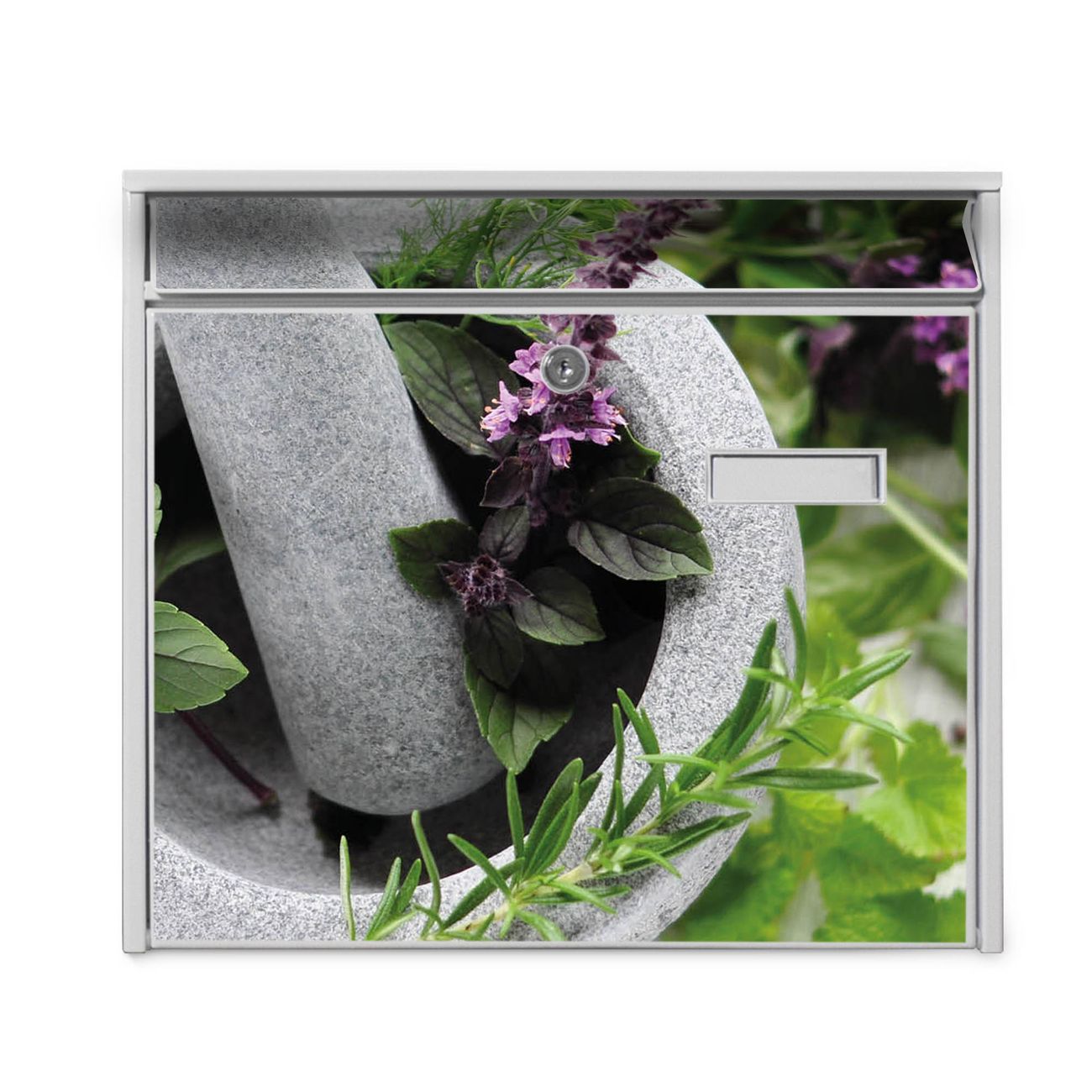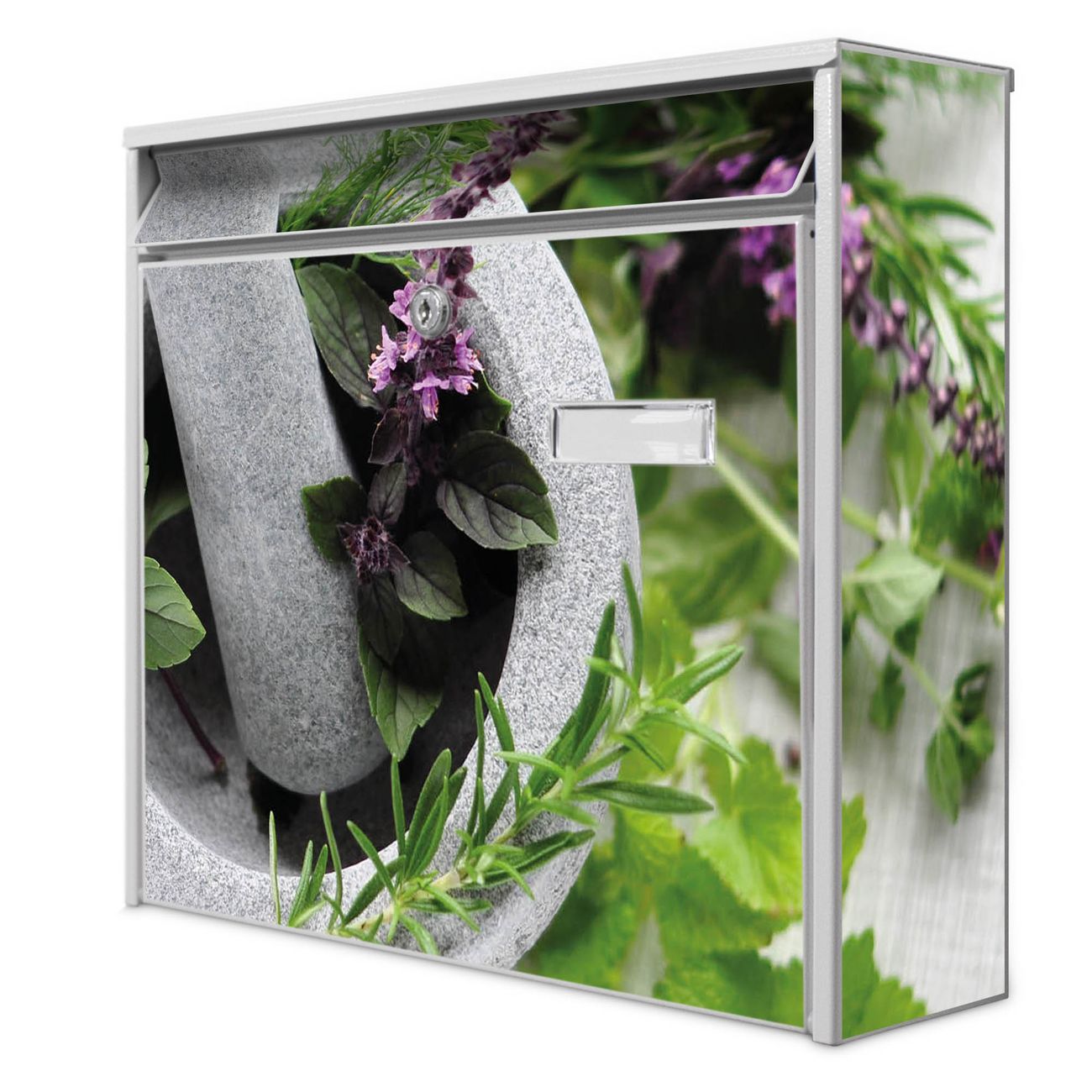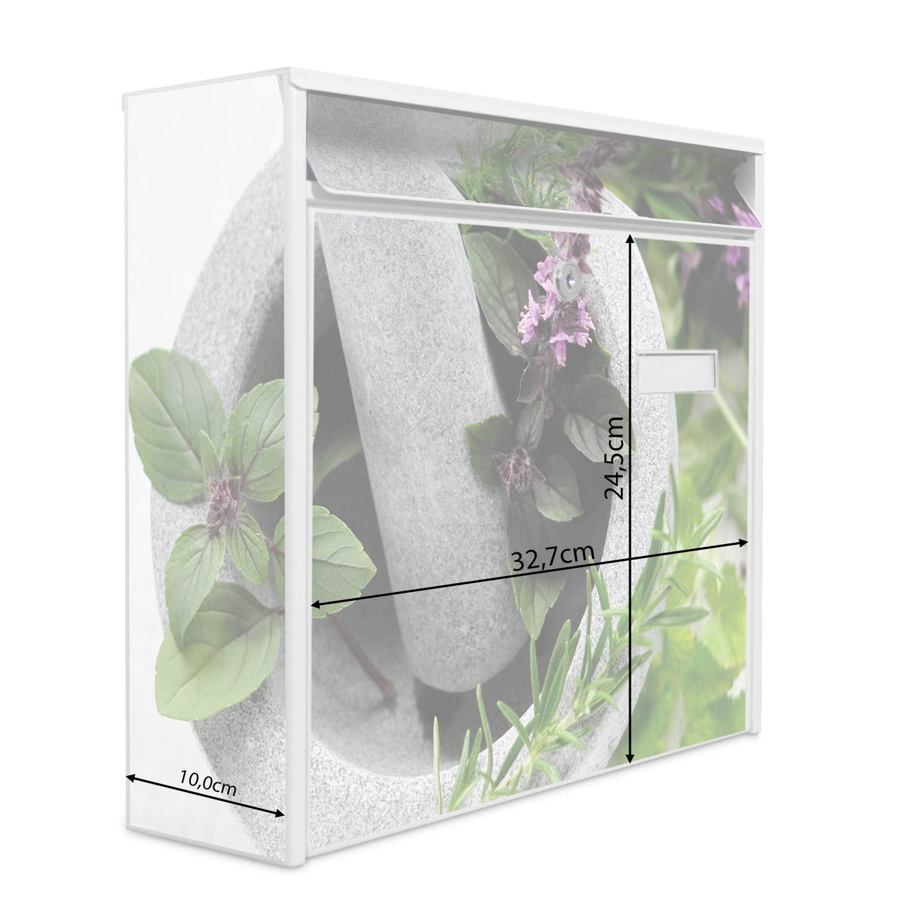 Der Burg Wächter Mail Briefkasten mit Motiv Kräuter bietet Ihnen mit seinem Fassungsvermögen genügend Platz auch für große A4 Sendungen. Auf Wunsch können Sie bei uns den passenden Standfuß kaufen und so aus dem Wandbriefkasten einen Standbriefkasten machen. Wir bieten Ihnen ebenfalls Namensschilder, bereits beschriftet oder frei zu beschriften, und verschiedene selbst gestaltete Bitte-Keine-Werbung-Aufkleber.