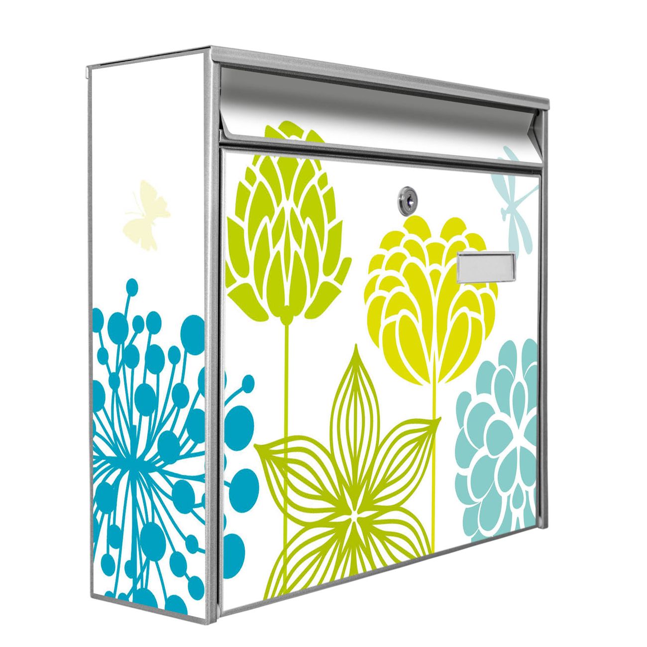 Der Burg Wächter Mail Briefkasten mit Motiv Kräuterwiese bietet Ihnen mit seinem Fassungsvermögen genügend Platz auch für große A4 Sendungen. Auf Wunsch können Sie bei uns den passenden Standfuß kaufen und so aus dem Wandbriefkasten einen Standbriefkasten machen. Wir bieten Ihnen ebenfalls Namensschilder, bereits beschriftet oder frei zu beschriften, und verschiedene selbst gestaltete Bitte-Keine-Werbung-Aufkleber.