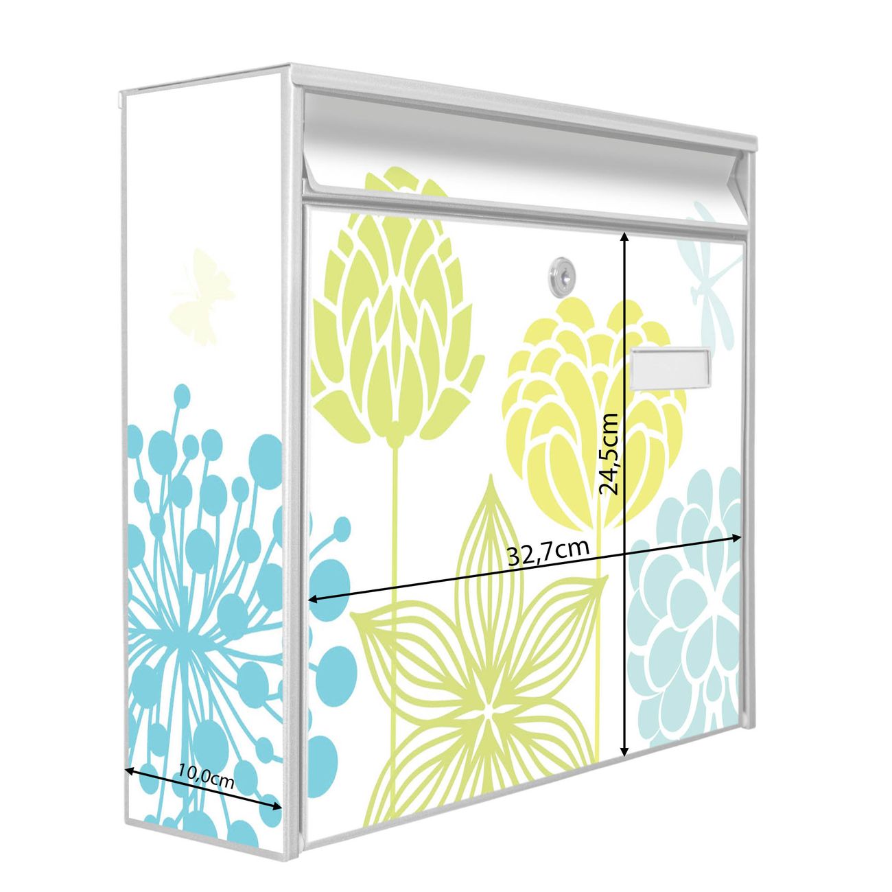 Die Größe des Briefkastens ist 36 x 32 x 10cm (BxHxT) groß. Das Motiv besteht aus einer wetter- und UV-festen Folie, die mit einem Schutzlaminat überzogen ist und Ihren Briefkasten zusätzlich vor Kratzern schützt. Sie erhalten 2 Schlüssel sowie das Montagematerial.