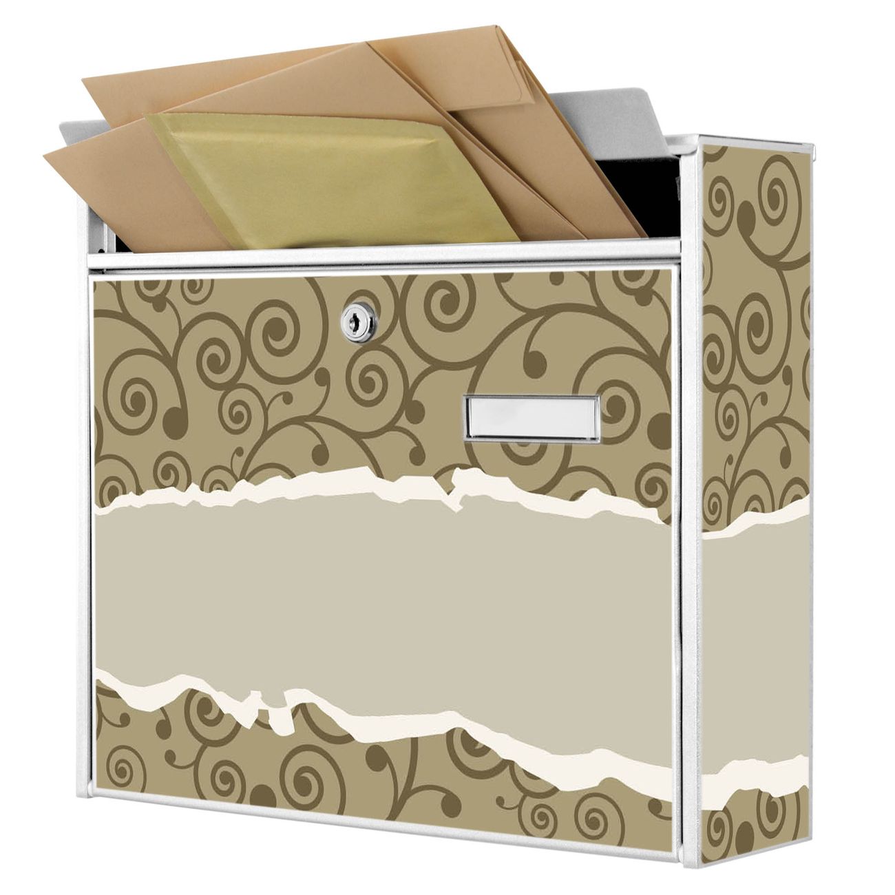 Der Burg Wächter Mail Briefkasten mit Motiv Kringel bietet Ihnen mit seinem Fassungsvermögen genügend Platz auch für große A4 Sendungen. Auf Wunsch können Sie bei uns den passenden Standfuß kaufen und so aus dem Wandbriefkasten einen Standbriefkasten machen. Wir bieten Ihnen ebenfalls Namensschilder, bereits beschriftet oder frei zu beschriften, und verschiedene selbst gestaltete Bitte-Keine-Werbung-Aufkleber.