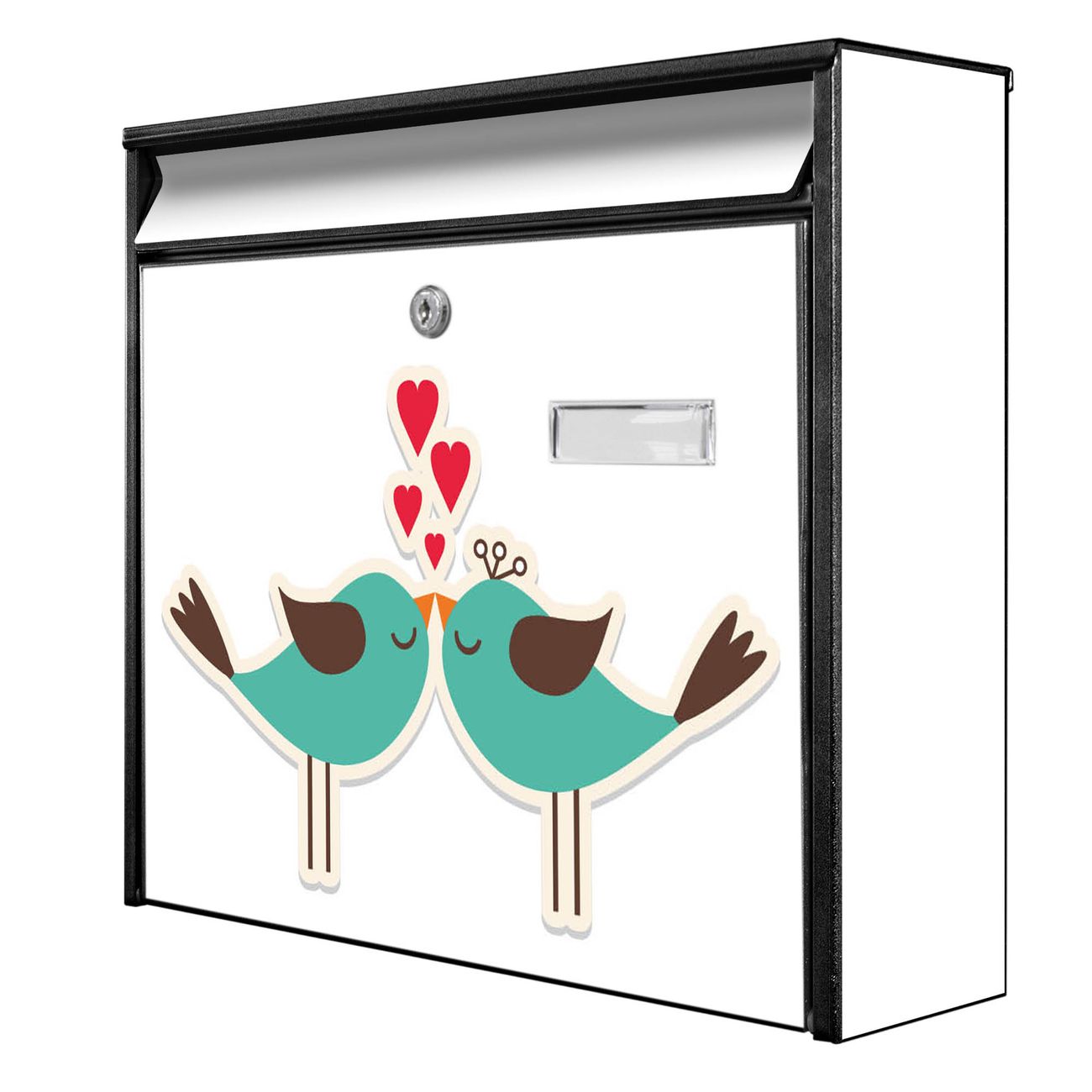 Der Burg Wächter Mail Briefkasten mit Motiv Küsschen bietet Ihnen mit seinem Fassungsvermögen genügend Platz auch für große A4 Sendungen. Auf Wunsch können Sie bei uns den passenden Standfuß kaufen und so aus dem Wandbriefkasten einen Standbriefkasten machen. Wir bieten Ihnen ebenfalls Namensschilder, bereits beschriftet oder frei zu beschriften, und verschiedene selbst gestaltete Bitte-Keine-Werbung-Aufkleber.