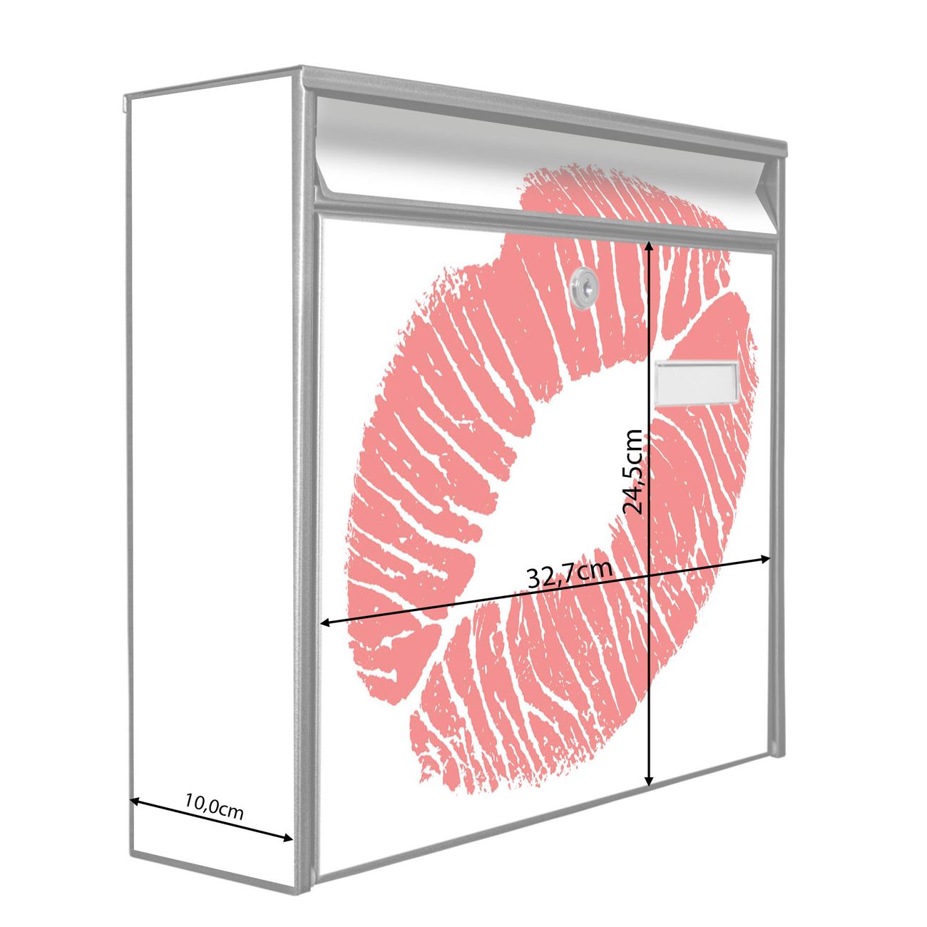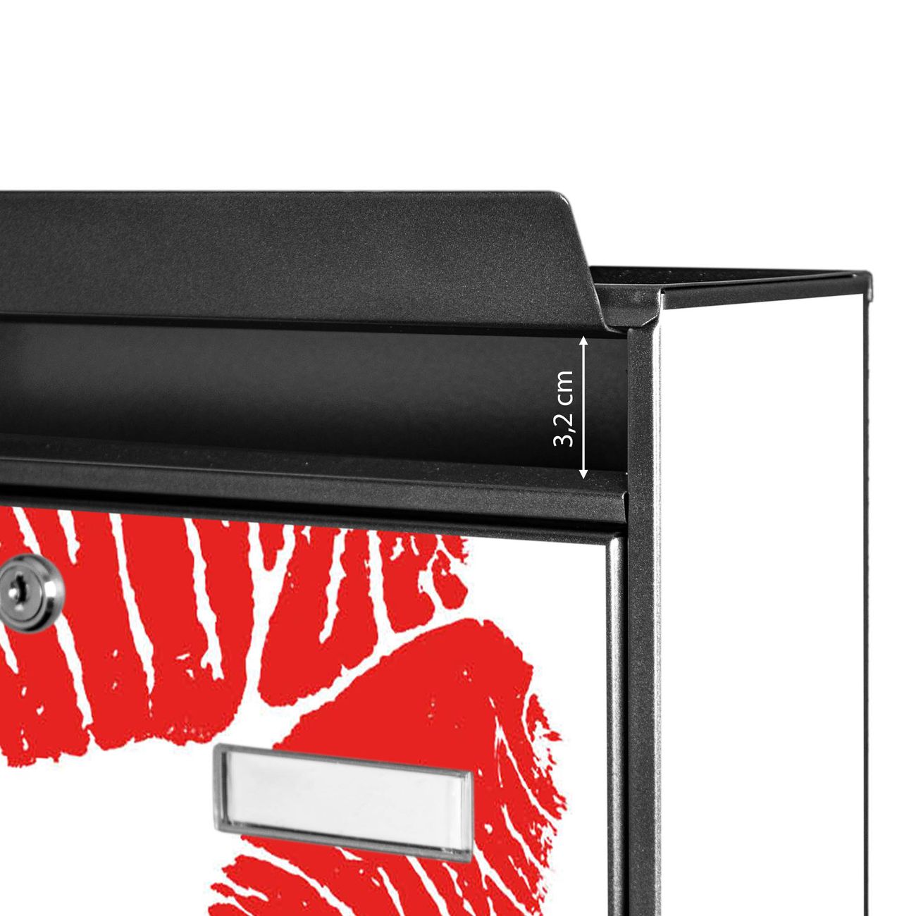 Der Burg Wächter Mail Briefkasten mit Motiv Kussmund bietet Ihnen mit seinem Fassungsvermögen genügend Platz auch für große A4 Sendungen. Auf Wunsch können Sie bei uns den passenden Standfuß kaufen und so aus dem Wandbriefkasten einen Standbriefkasten machen. Wir bieten Ihnen ebenfalls Namensschilder, bereits beschriftet oder frei zu beschriften, und verschiedene selbst gestaltete Bitte-Keine-Werbung-Aufkleber.