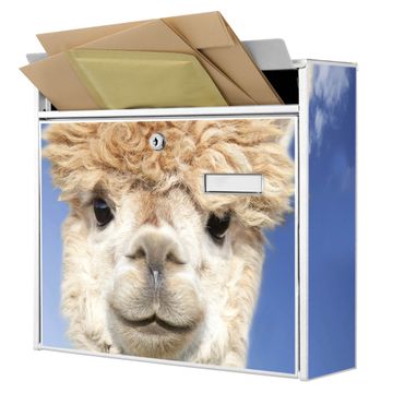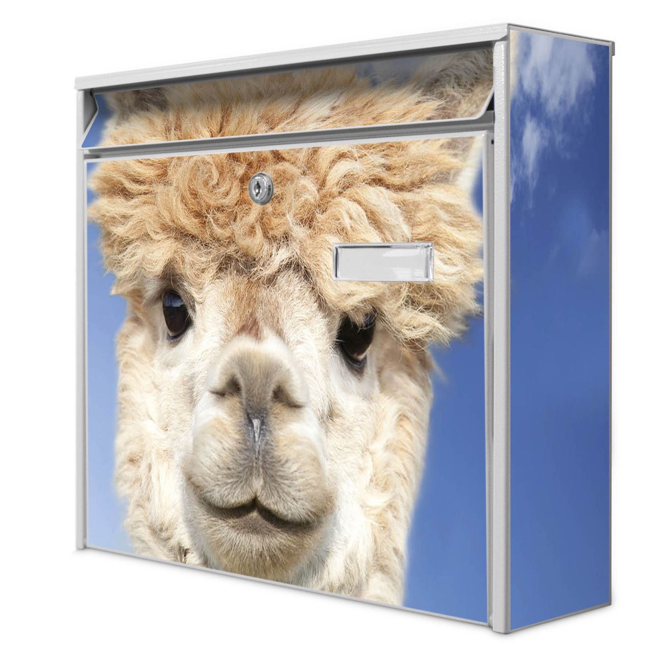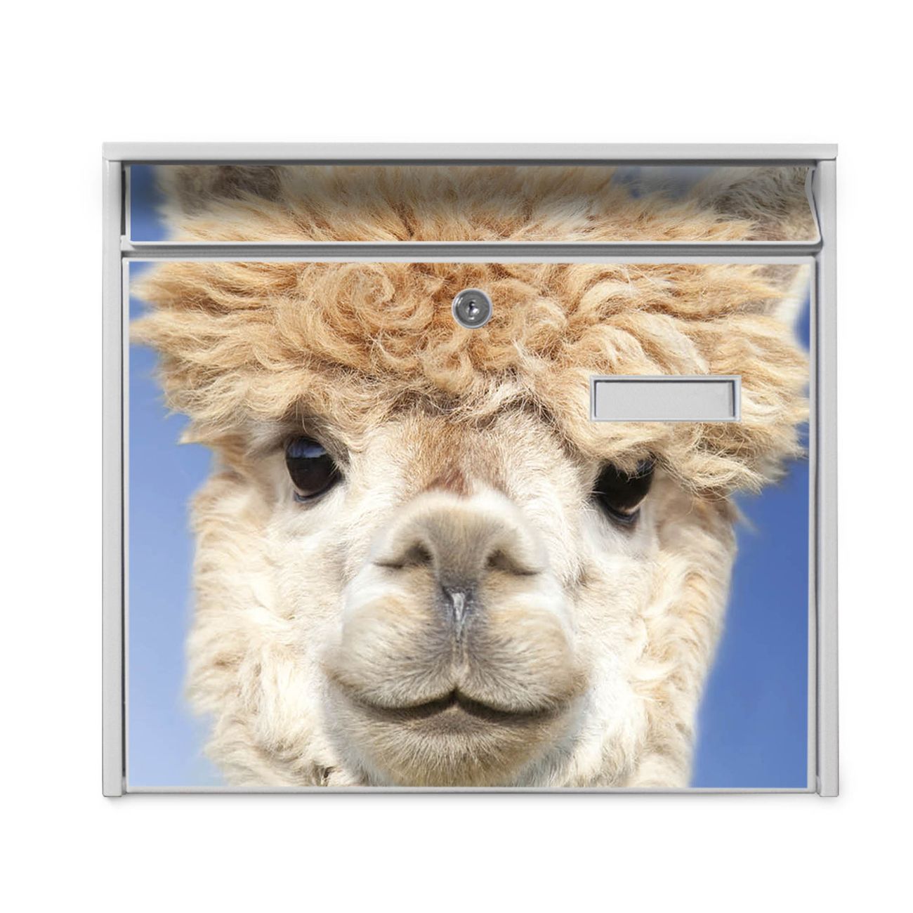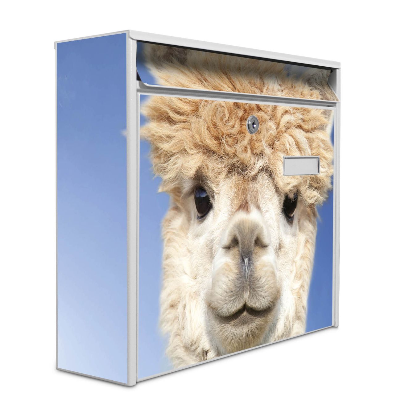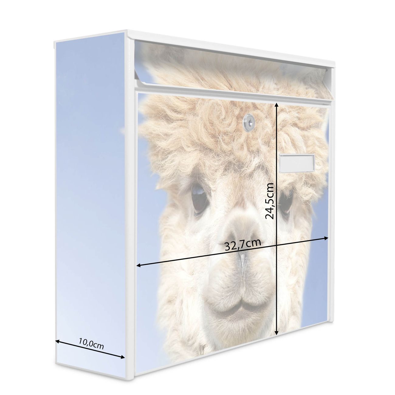 Der Burg Wächter Mail Briefkasten mit Motiv Lama bietet Ihnen mit seinem Fassungsvermögen genügend Platz auch für große A4 Sendungen. Auf Wunsch können Sie bei uns den passenden Standfuß kaufen und so aus dem Wandbriefkasten einen Standbriefkasten machen. Wir bieten Ihnen ebenfalls Namensschilder, bereits beschriftet oder frei zu beschriften, und verschiedene selbst gestaltete Bitte-Keine-Werbung-Aufkleber.