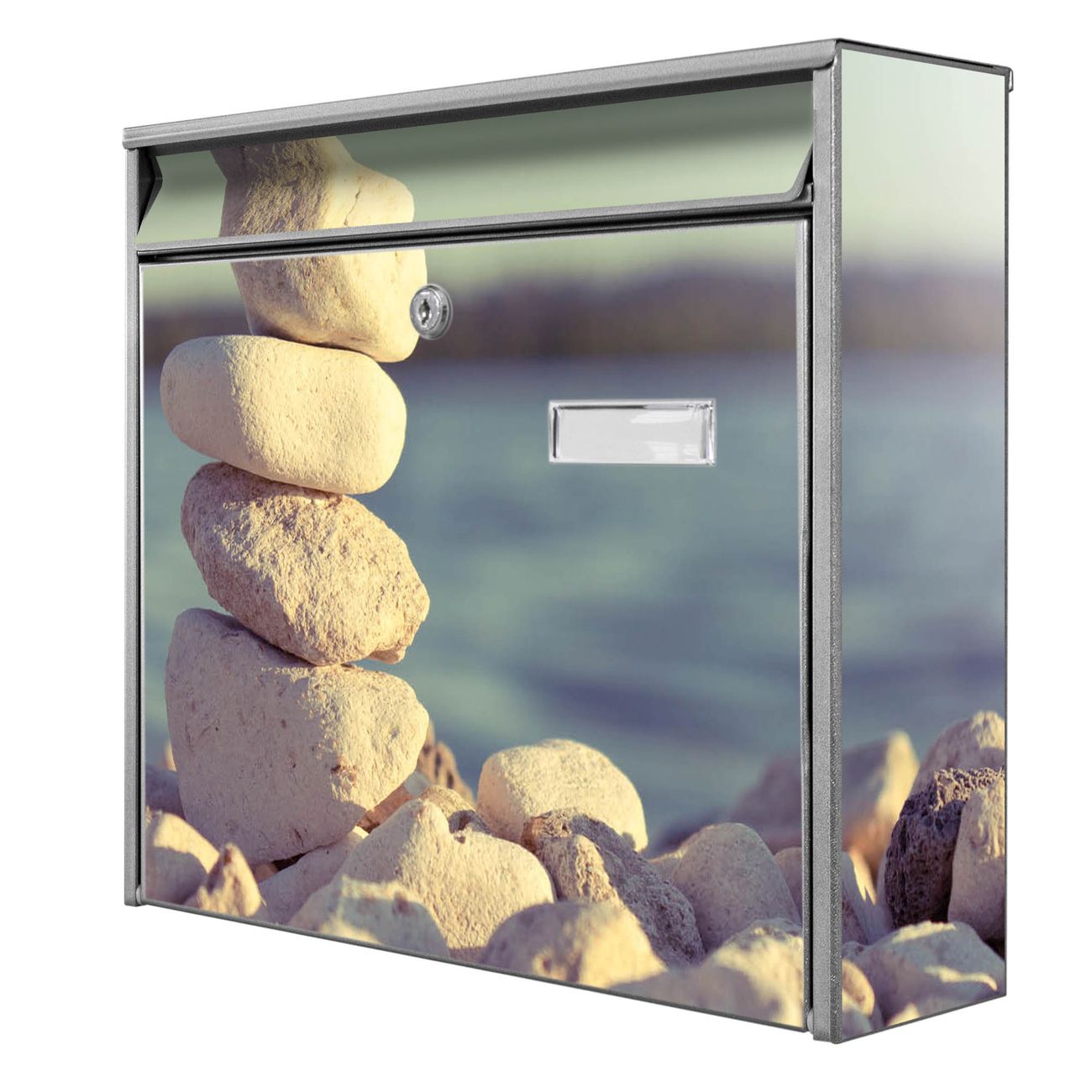 Der Burg Wächter Mail Briefkasten mit Motiv Leichte Steine bietet Ihnen mit seinem Fassungsvermögen genügend Platz auch für große A4 Sendungen. Auf Wunsch können Sie bei uns den passenden Standfuß kaufen und so aus dem Wandbriefkasten einen Standbriefkasten machen. Wir bieten Ihnen ebenfalls Namensschilder, bereits beschriftet oder frei zu beschriften, und verschiedene selbst gestaltete Bitte-Keine-Werbung-Aufkleber.