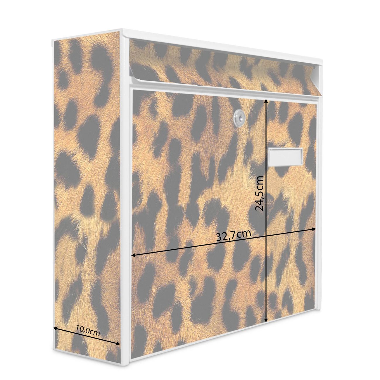 Der Burg Wächter Mail Briefkasten mit Motiv Leopard bietet Ihnen mit seinem Fassungsvermögen genügend Platz auch für große A4 Sendungen. Auf Wunsch können Sie bei uns den passenden Standfuß kaufen und so aus dem Wandbriefkasten einen Standbriefkasten machen. Wir bieten Ihnen ebenfalls Namensschilder, bereits beschriftet oder frei zu beschriften, und verschiedene selbst gestaltete Bitte-Keine-Werbung-Aufkleber.