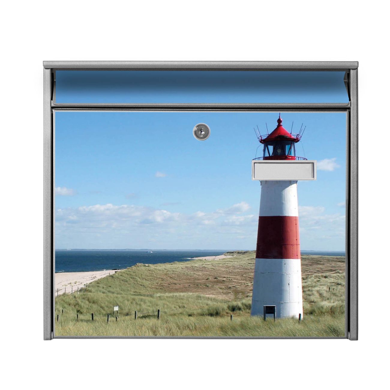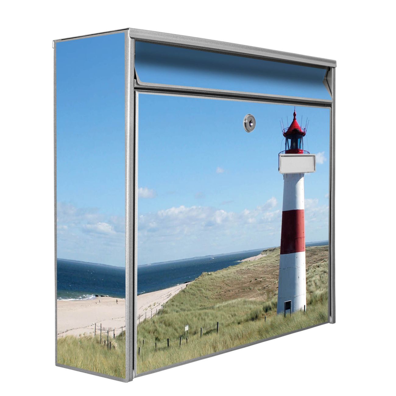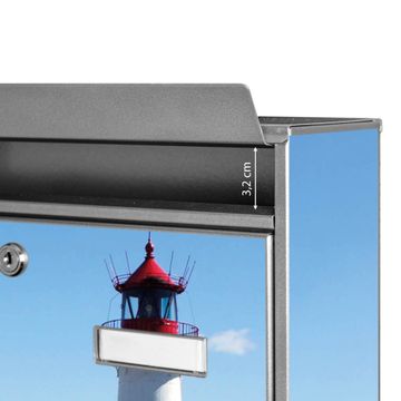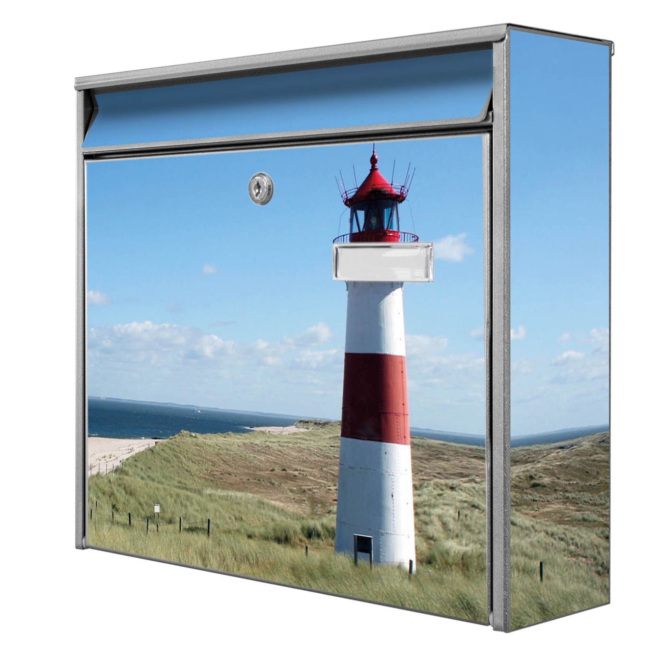 Der Burg Wächter Mail Briefkasten mit Motiv Leuchtturm bietet Ihnen mit seinem Fassungsvermögen genügend Platz auch für große A4 Sendungen. Auf Wunsch können Sie bei uns den passenden Standfuß kaufen und so aus dem Wandbriefkasten einen Standbriefkasten machen. Wir bieten Ihnen ebenfalls Namensschilder, bereits beschriftet oder frei zu beschriften, und verschiedene selbst gestaltete Bitte-Keine-Werbung-Aufkleber.