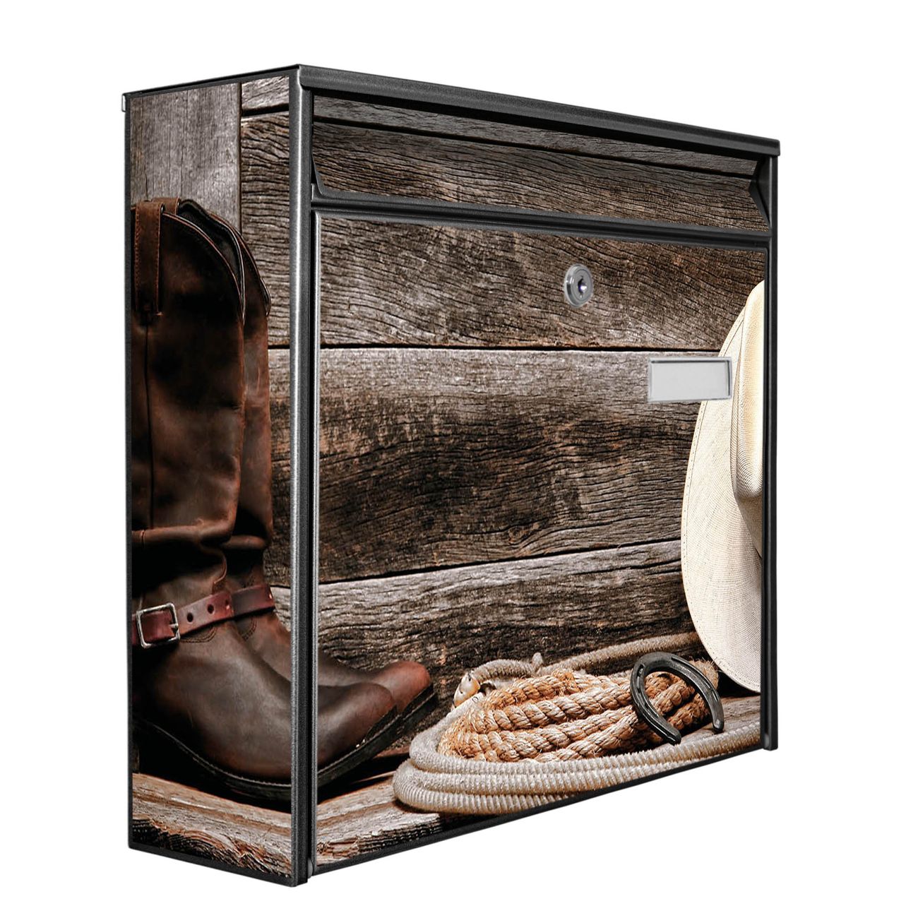 Der Postkasten mit Motiv Linedance Set hat ein sehr ansprechendes und zeitloses Design. Heben Sie Sich von der tristen grauen Masse ab, ohne auf Funktionalität zu verzichten. Die weite Öffnung ohne scharfe Kanten ermöglicht eine einfache Handhabung beim Entnehmen der Post. Die Größe bietet genügend Platz für Sendungen aller Art, der Einwurf fasst auch größere A4 Sendungen. Ihr Burg-Wächter Motivbriefkasten wird in Sachsen in einer kleinen Manufaktur von Hand veredelt. Die Motivfolie ist lösungsmittelfrei und schutzlaminiert, dies sorgt für einen langen Halt. Wir legen großen Wert auf die Verbindung von Funktionalität und Design.