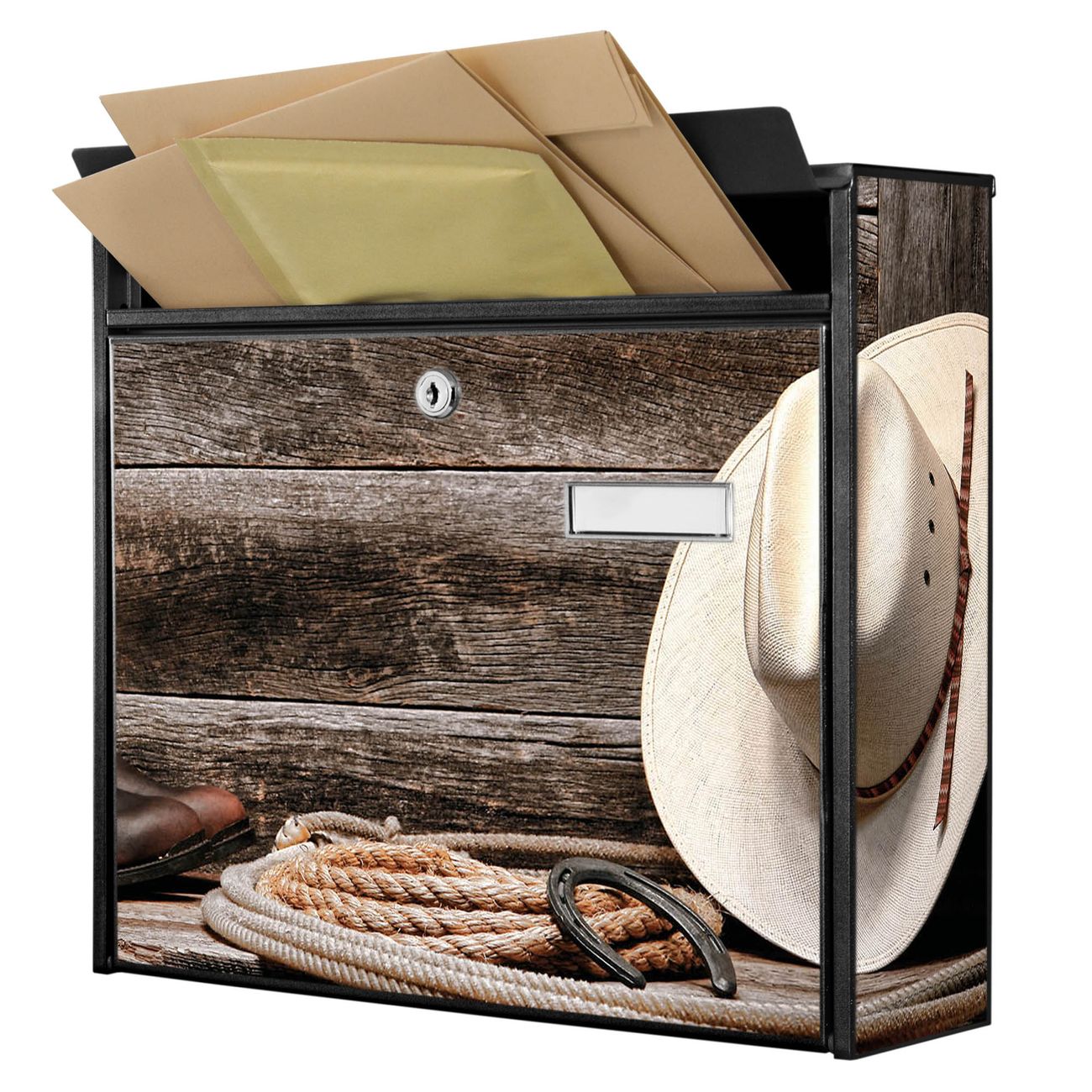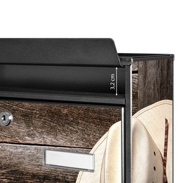 Der Burg Wächter Mail Briefkasten mit Motiv Linedance Set bietet Ihnen mit seinem Fassungsvermögen genügend Platz auch für große A4 Sendungen. Auf Wunsch können Sie bei uns den passenden Standfuß kaufen und so aus dem Wandbriefkasten einen Standbriefkasten machen. Wir bieten Ihnen ebenfalls Namensschilder, bereits beschriftet oder frei zu beschriften, und verschiedene selbst gestaltete Bitte-Keine-Werbung-Aufkleber.