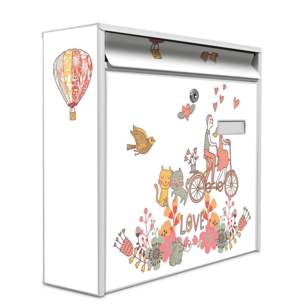 Der Burg Wächter Mail Briefkasten mit Motiv Love bietet Ihnen mit seinem Fassungsvermögen genügend Platz auch für große A4 Sendungen. Auf Wunsch können Sie bei uns den passenden Standfuß kaufen und so aus dem Wandbriefkasten einen Standbriefkasten machen. Wir bieten Ihnen ebenfalls Namensschilder, bereits beschriftet oder frei zu beschriften, und verschiedene selbst gestaltete Bitte-Keine-Werbung-Aufkleber.