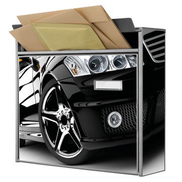 Der Burg Wächter Mail Briefkasten mit Motiv Luxus Car bietet Ihnen mit seinem Fassungsvermögen genügend Platz auch für große A4 Sendungen. Auf Wunsch können Sie bei uns den passenden Standfuß kaufen und so aus dem Wandbriefkasten einen Standbriefkasten machen. Wir bieten Ihnen ebenfalls Namensschilder, bereits beschriftet oder frei zu beschriften, und verschiedene selbst gestaltete Bitte-Keine-Werbung-Aufkleber.