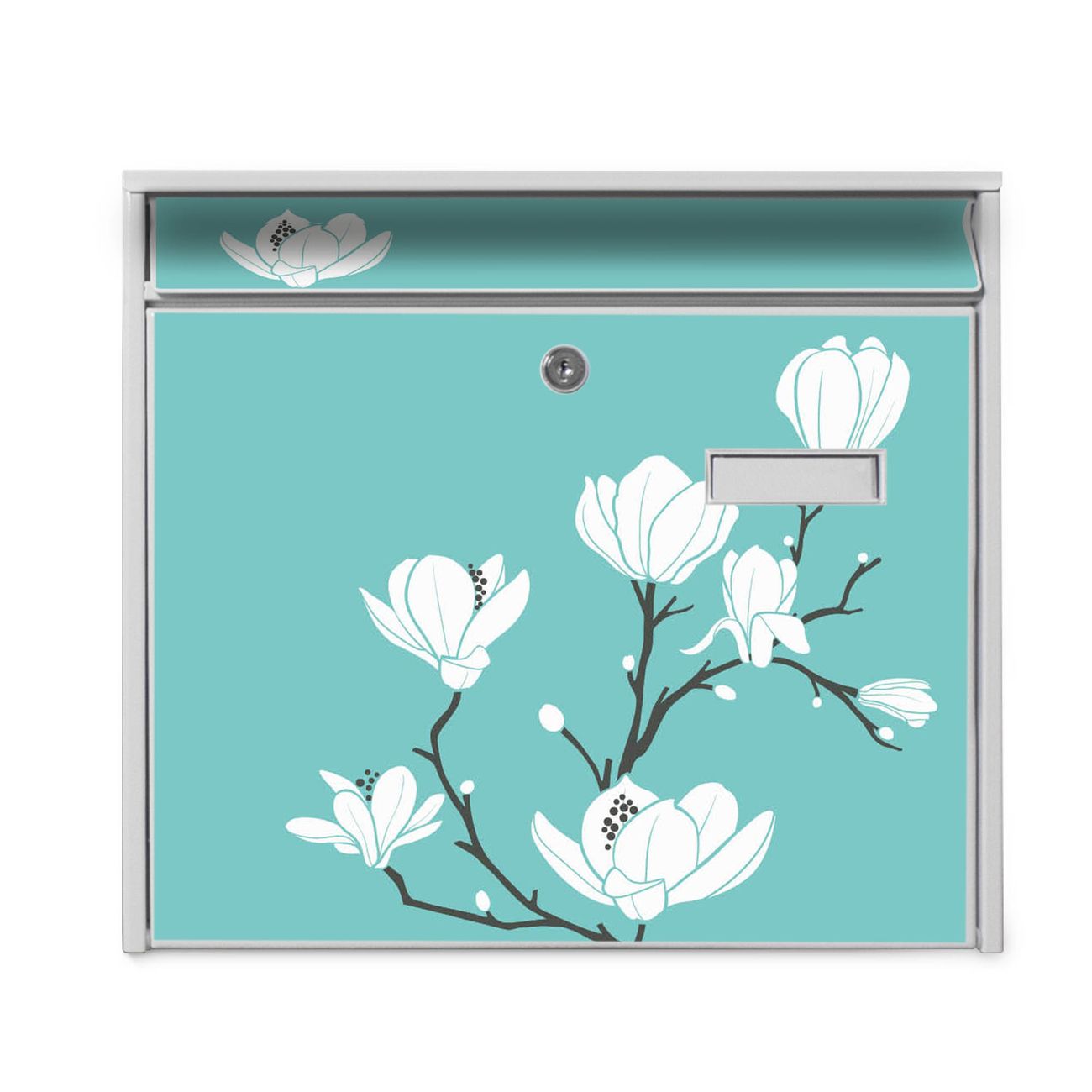 Der Burg Wächter Mail Briefkasten mit Motiv Magnolien bietet Ihnen mit seinem Fassungsvermögen genügend Platz auch für große A4 Sendungen. Auf Wunsch können Sie bei uns den passenden Standfuß kaufen und so aus dem Wandbriefkasten einen Standbriefkasten machen. Wir bieten Ihnen ebenfalls Namensschilder, bereits beschriftet oder frei zu beschriften, und verschiedene selbst gestaltete Bitte-Keine-Werbung-Aufkleber.