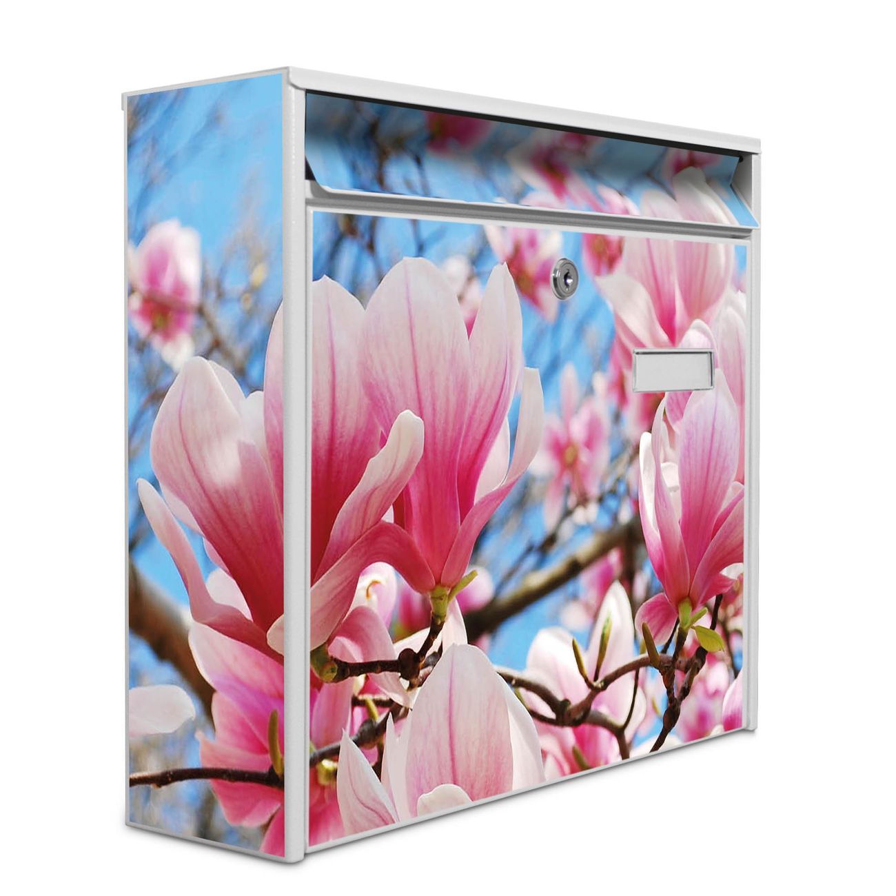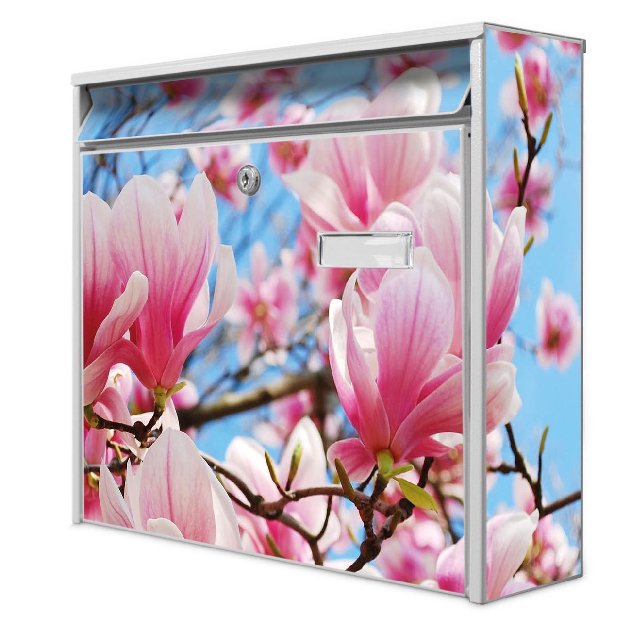 Der Postkasten mit Motiv Magnolienbaum hat ein sehr ansprechendes und zeitloses Design. Heben Sie Sich von der tristen grauen Masse ab, ohne auf Funktionalität zu verzichten. Die weite Öffnung ohne scharfe Kanten ermöglicht eine einfache Handhabung beim Entnehmen der Post. Die Größe bietet genügend Platz für Sendungen aller Art, der Einwurf fasst auch größere A4 Sendungen. Ihr Burg-Wächter Motivbriefkasten wird in Sachsen in einer kleinen Manufaktur von Hand veredelt. Die Motivfolie ist lösungsmittelfrei und schutzlaminiert, dies sorgt für einen langen Halt. Wir legen großen Wert auf die Verbindung von Funktionalität und Design.