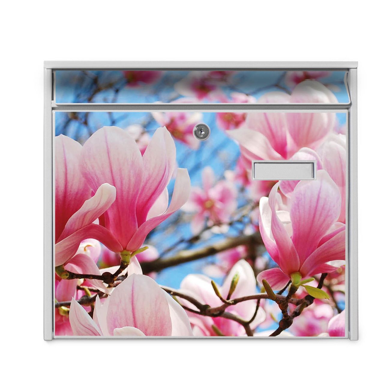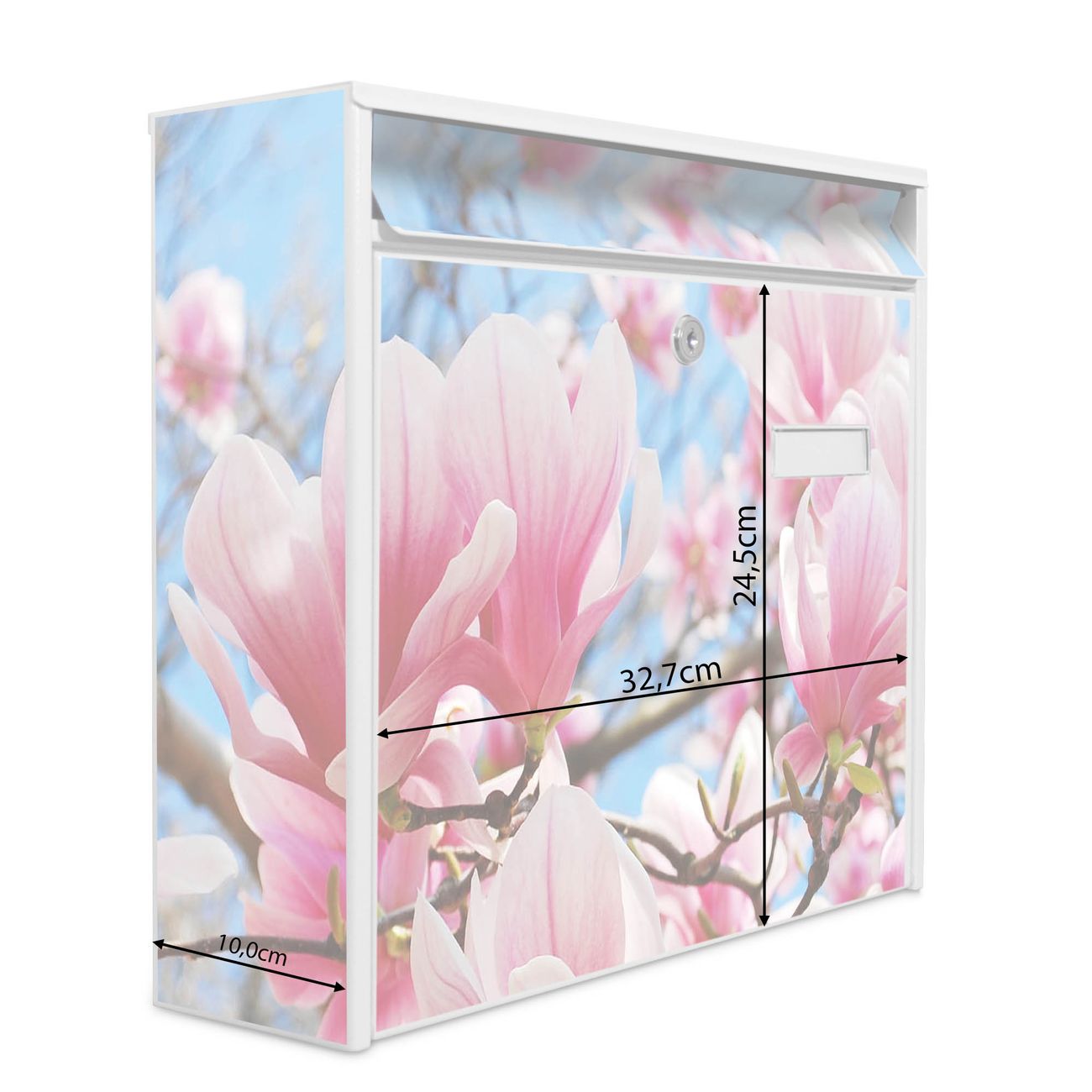 Der Burg Wächter Mail Briefkasten mit Motiv Magnolienbaum bietet Ihnen mit seinem Fassungsvermögen genügend Platz auch für große A4 Sendungen. Auf Wunsch können Sie bei uns den passenden Standfuß kaufen und so aus dem Wandbriefkasten einen Standbriefkasten machen. Wir bieten Ihnen ebenfalls Namensschilder, bereits beschriftet oder frei zu beschriften, und verschiedene selbst gestaltete Bitte-Keine-Werbung-Aufkleber.