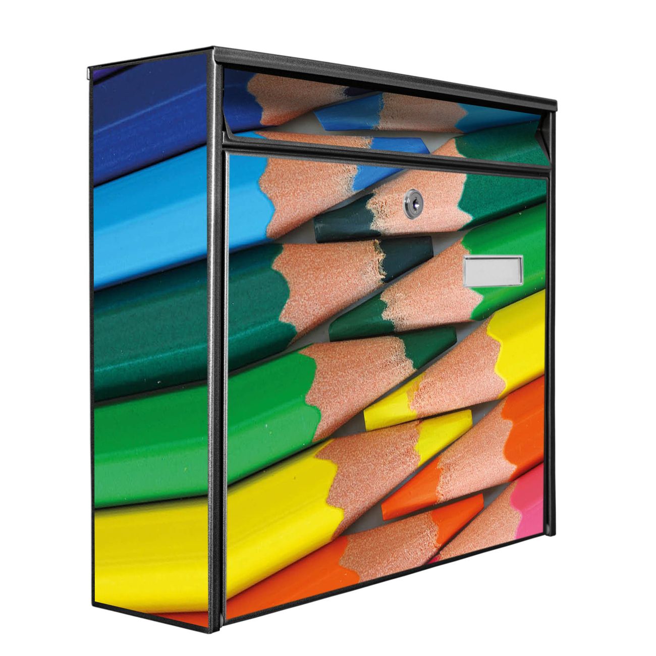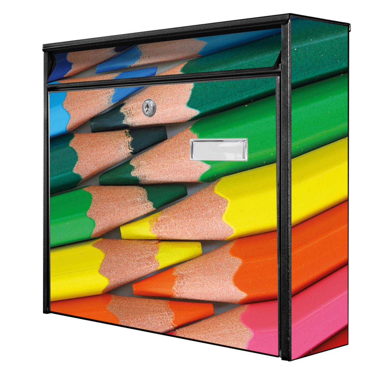 Der Postkasten mit Motiv Malstifte hat ein sehr ansprechendes und zeitloses Design. Heben Sie Sich von der tristen grauen Masse ab, ohne auf Funktionalität zu verzichten. Die weite Öffnung ohne scharfe Kanten ermöglicht eine einfache Handhabung beim Entnehmen der Post. Die Größe bietet genügend Platz für Sendungen aller Art, der Einwurf fasst auch größere A4 Sendungen. Ihr Burg-Wächter Motivbriefkasten wird in Sachsen in einer kleinen Manufaktur von Hand veredelt. Die Motivfolie ist lösungsmittelfrei und schutzlaminiert, dies sorgt für einen langen Halt. Wir legen großen Wert auf die Verbindung von Funktionalität und Design.