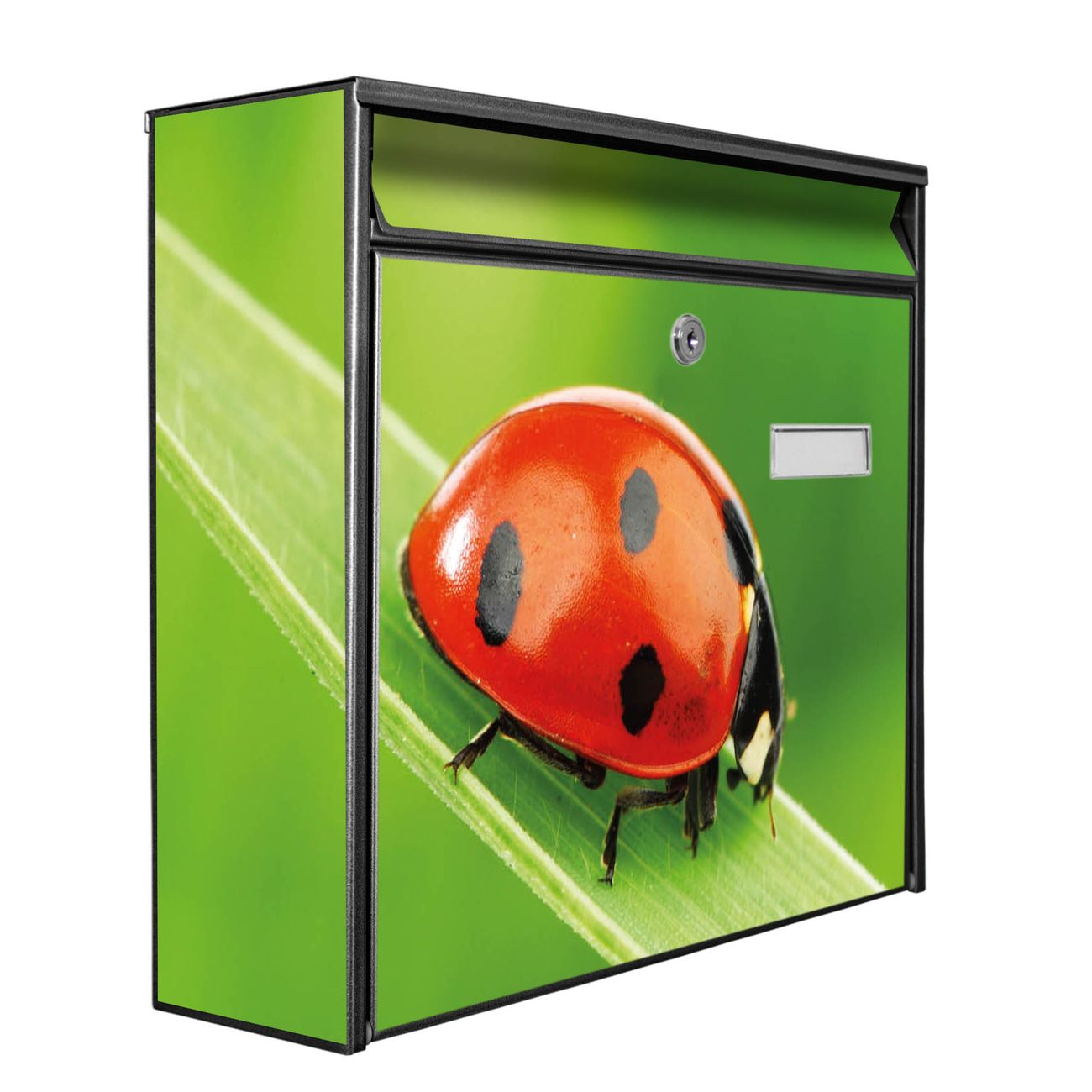Der Postkasten mit Motiv Marienkäfer hat ein sehr ansprechendes und zeitloses Design. Heben Sie Sich von der tristen grauen Masse ab, ohne auf Funktionalität zu verzichten. Die weite Öffnung ohne scharfe Kanten ermöglicht eine einfache Handhabung beim Entnehmen der Post. Die Größe bietet genügend Platz für Sendungen aller Art, der Einwurf fasst auch größere A4 Sendungen. Ihr Burg-Wächter Motivbriefkasten wird in Sachsen in einer kleinen Manufaktur von Hand veredelt. Die Motivfolie ist lösungsmittelfrei und schutzlaminiert, dies sorgt für einen langen Halt. Wir legen großen Wert auf die Verbindung von Funktionalität und Design.