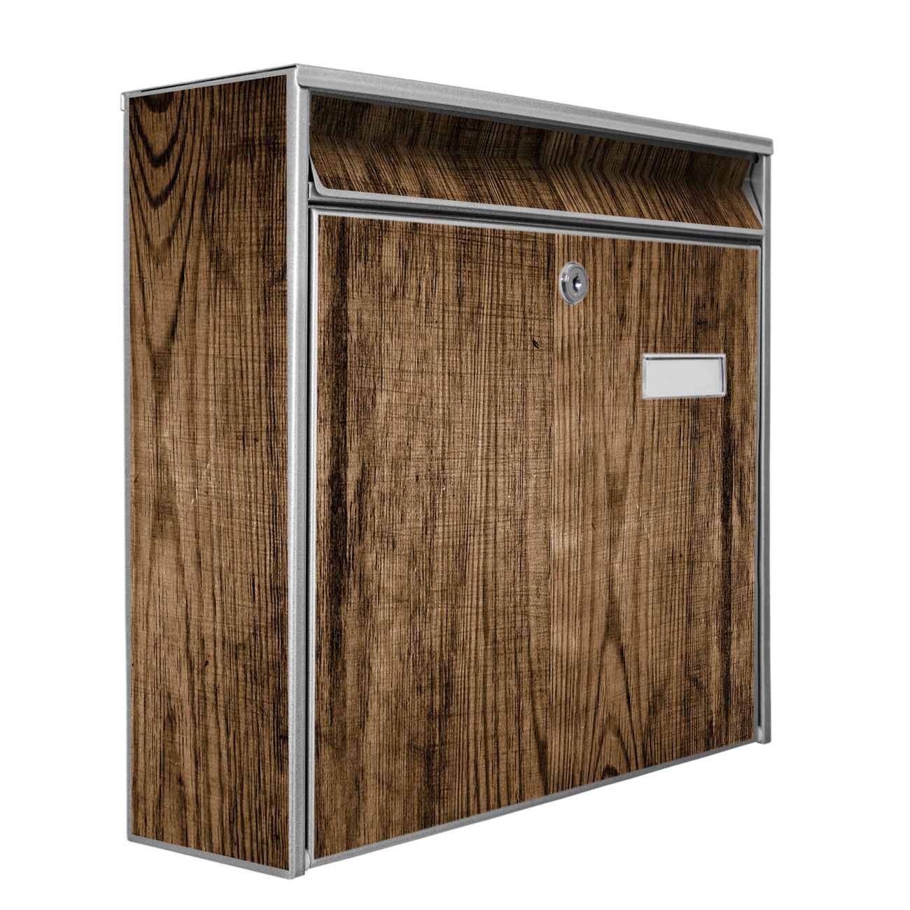 Der Postkasten mit Motiv Maserung Dunkel hat ein sehr ansprechendes und zeitloses Design. Heben Sie Sich von der tristen grauen Masse ab, ohne auf Funktionalität zu verzichten. Die weite Öffnung ohne scharfe Kanten ermöglicht eine einfache Handhabung beim Entnehmen der Post. Die Größe bietet genügend Platz für Sendungen aller Art, der Einwurf fasst auch größere A4 Sendungen. Ihr Burg-Wächter Motivbriefkasten wird in Sachsen in einer kleinen Manufaktur von Hand veredelt. Die Motivfolie ist lösungsmittelfrei und schutzlaminiert, dies sorgt für einen langen Halt. Wir legen großen Wert auf die Verbindung von Funktionalität und Design.
