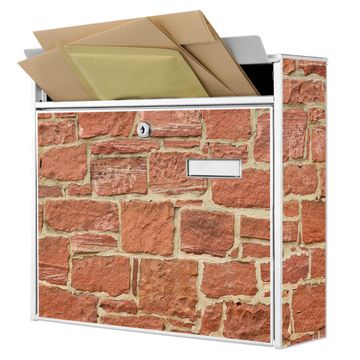 Der Burg Wächter Mail Briefkasten mit Motiv Mauerwerk bietet Ihnen mit seinem Fassungsvermögen genügend Platz auch für große A4 Sendungen. Auf Wunsch können Sie bei uns den passenden Standfuß kaufen und so aus dem Wandbriefkasten einen Standbriefkasten machen. Wir bieten Ihnen ebenfalls Namensschilder, bereits beschriftet oder frei zu beschriften, und verschiedene selbst gestaltete Bitte-Keine-Werbung-Aufkleber.