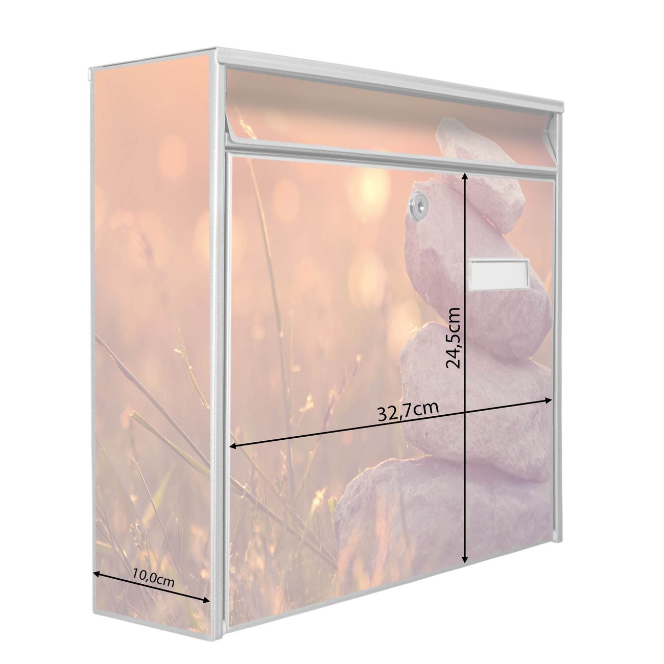 Die Größe des Briefkastens ist 36 x 32 x 10cm (BxHxT) groß. Das Motiv besteht aus einer wetter- und UV-festen Folie, die mit einem Schutzlaminat überzogen ist und Ihren Briefkasten zusätzlich vor Kratzern schützt. Sie erhalten 2 Schlüssel sowie das Montagematerial.