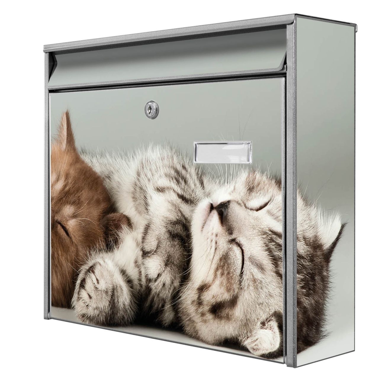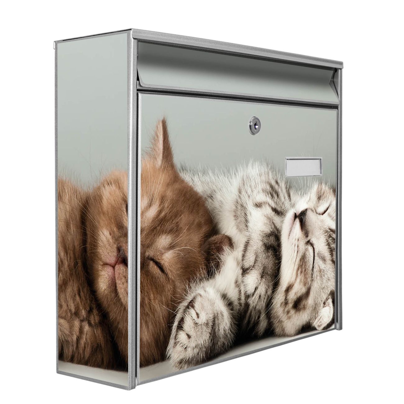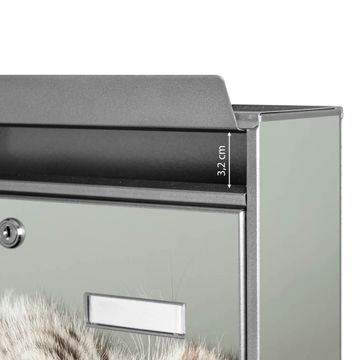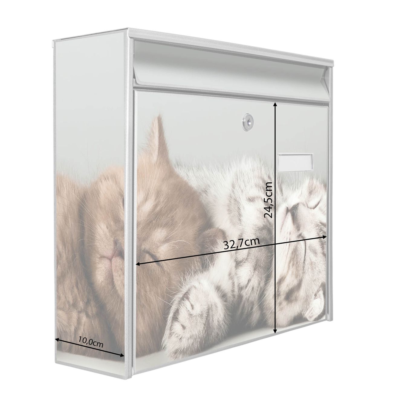 Die Größe des Briefkastens ist 36 x 32 x 10cm (BxHxT) groß. Das Motiv besteht aus einer wetter- und UV-festen Folie, die mit einem Schutzlaminat überzogen ist und Ihren Briefkasten zusätzlich vor Kratzern schützt. Sie erhalten 2 Schlüssel sowie das Montagematerial.