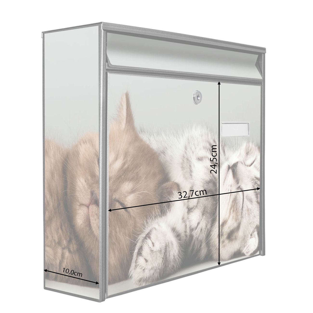 Die Größe des Briefkastens ist 36 x 32 x 10cm (BxHxT) groß. Das Motiv besteht aus einer wetter- und UV-festen Folie, die mit einem Schutzlaminat überzogen ist und Ihren Briefkasten zusätzlich vor Kratzern schützt. Sie erhalten 2 Schlüssel sowie das Montagematerial.