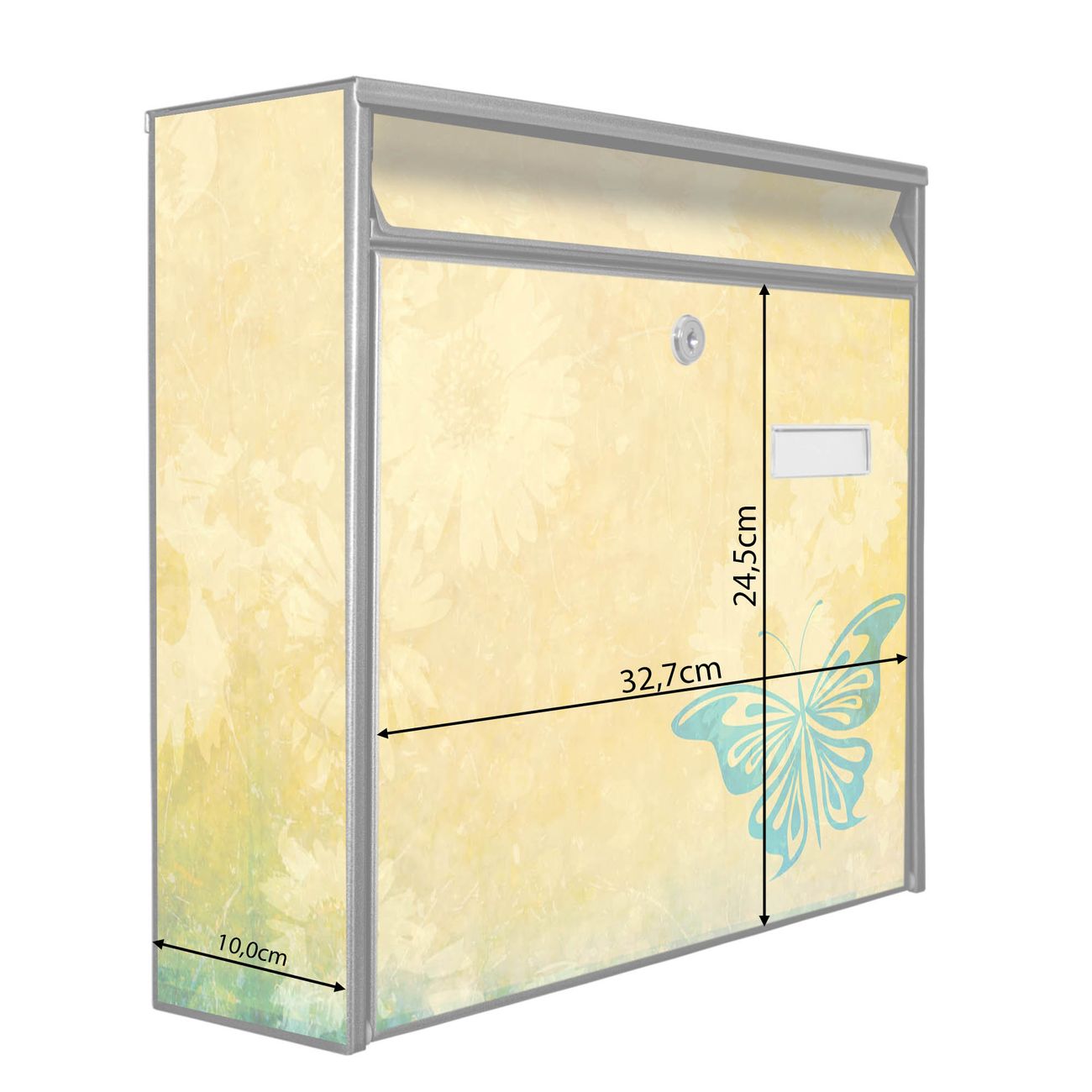 Die Größe des Briefkastens ist 36 x 32 x 10cm (BxHxT) groß. Das Motiv besteht aus einer wetter- und UV-festen Folie, die mit einem Schutzlaminat überzogen ist und Ihren Briefkasten zusätzlich vor Kratzern schützt. Sie erhalten 2 Schlüssel sowie das Montagematerial.