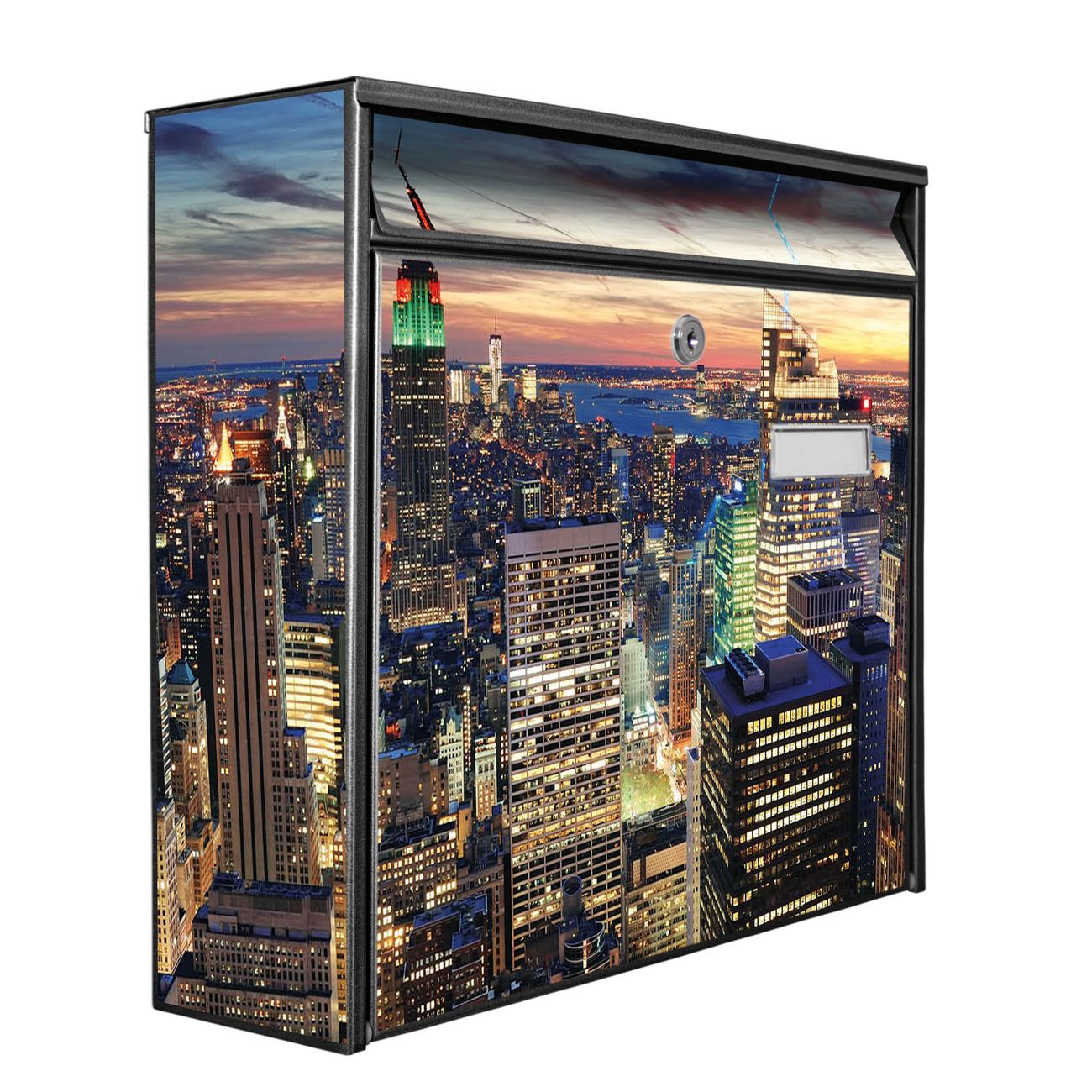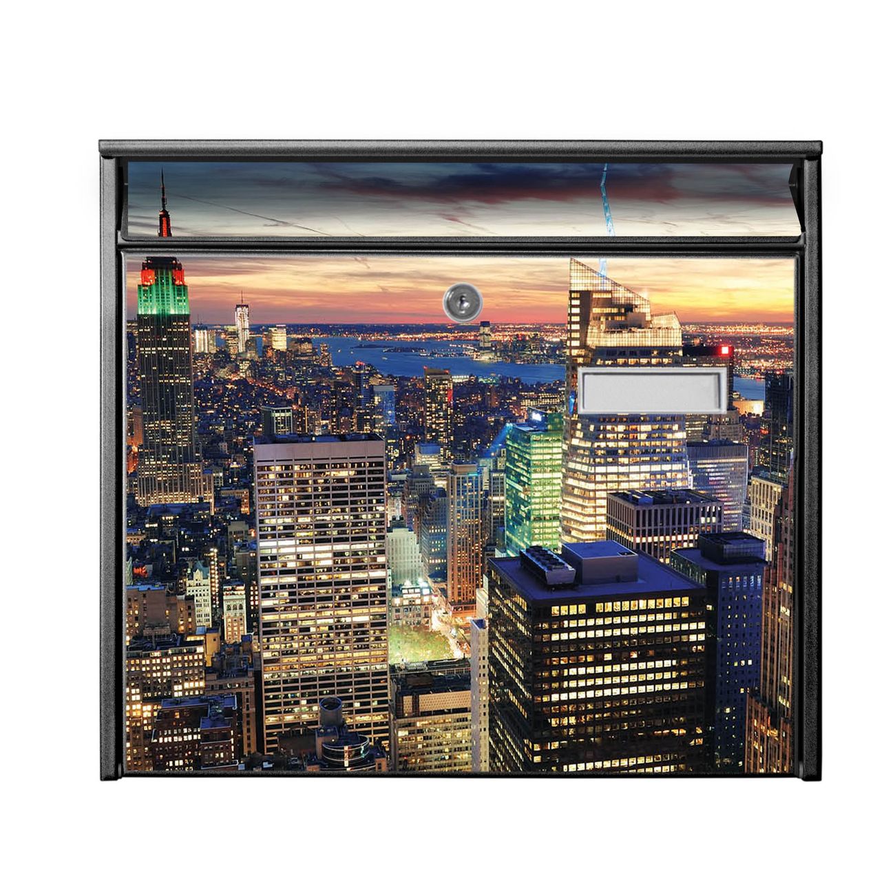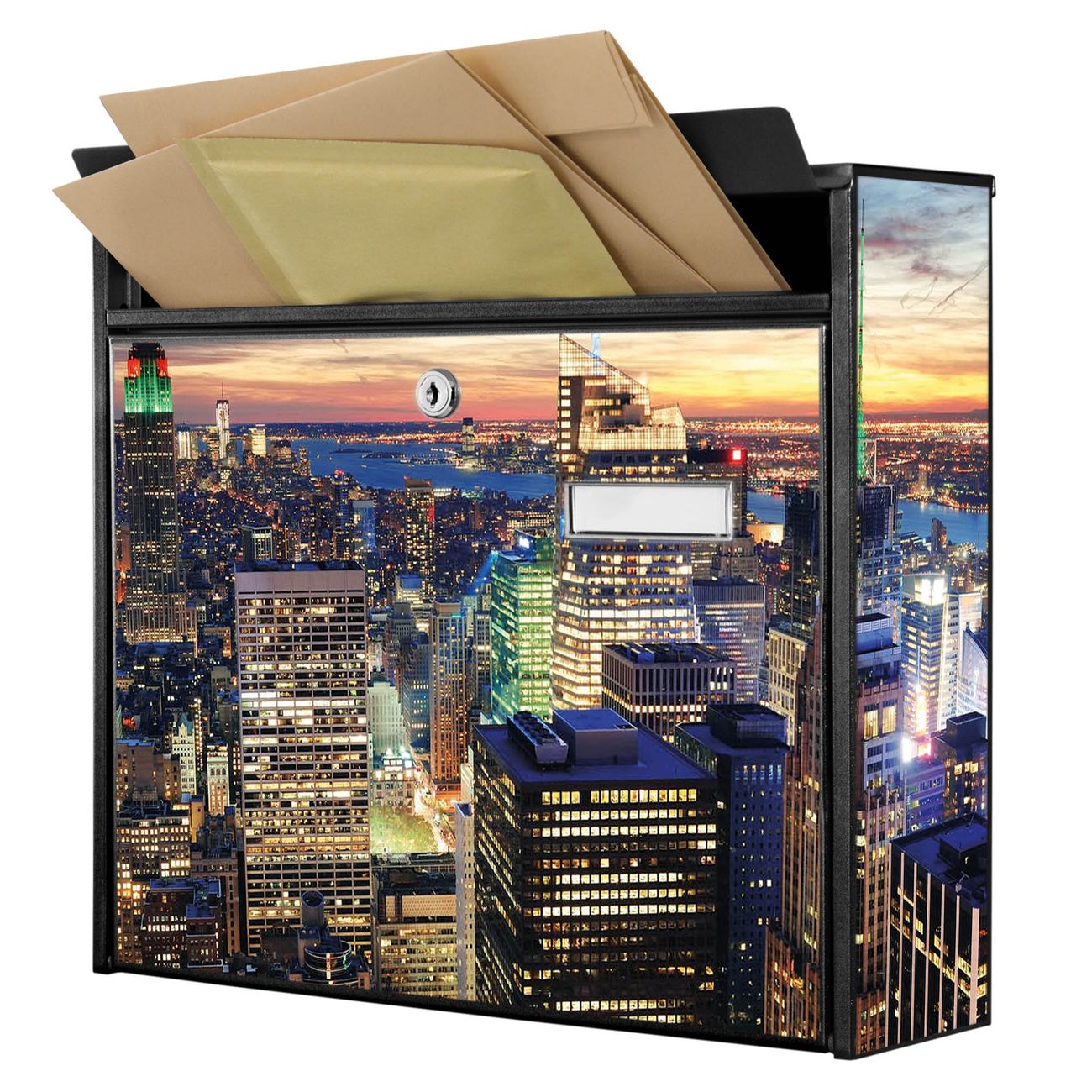 Der Burg Wächter Mail Briefkasten mit Motiv New York Sunset bietet Ihnen mit seinem Fassungsvermögen genügend Platz auch für große A4 Sendungen. Auf Wunsch können Sie bei uns den passenden Standfuß kaufen und so aus dem Wandbriefkasten einen Standbriefkasten machen. Wir bieten Ihnen ebenfalls Namensschilder, bereits beschriftet oder frei zu beschriften, und verschiedene selbst gestaltete Bitte-Keine-Werbung-Aufkleber.